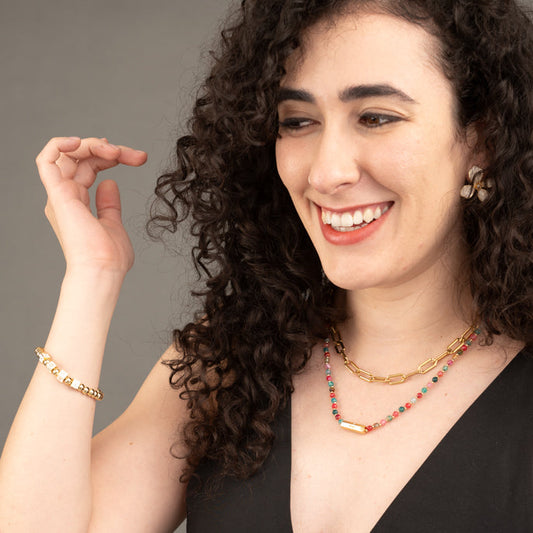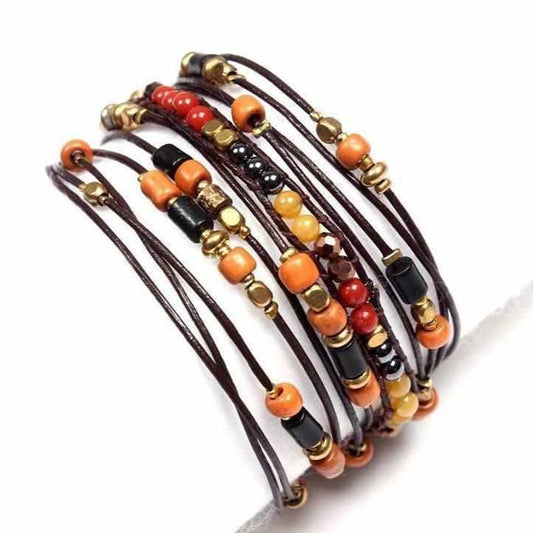 5-Wrap Leather & Beads Bracelet / Necklace - Thailand