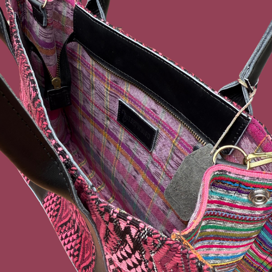 Pink-Black Huipil Bucket Bag