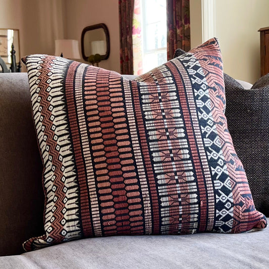 Handwoven Vintage Fabric Long Lumbar Pillow Cover with Embroidery