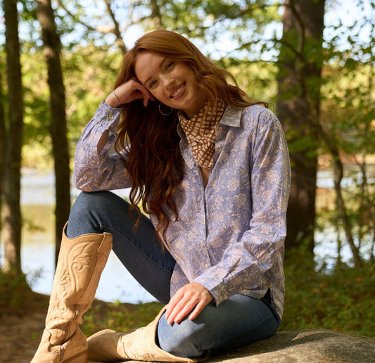Good Boyfriend Shirt - Floral Escape Bluebird and Dove Grey