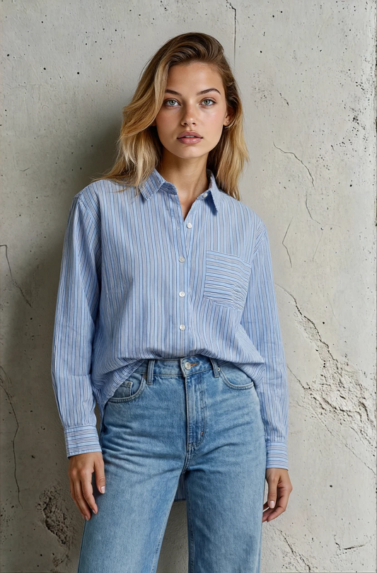 Good Boyfriend Shirt - Tuscan Stripe Cornflower Blue
