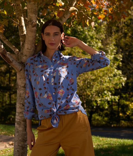Good Boyfriend Shirt - Birdie On A Vine Cornflower Blue