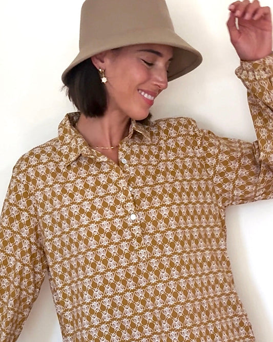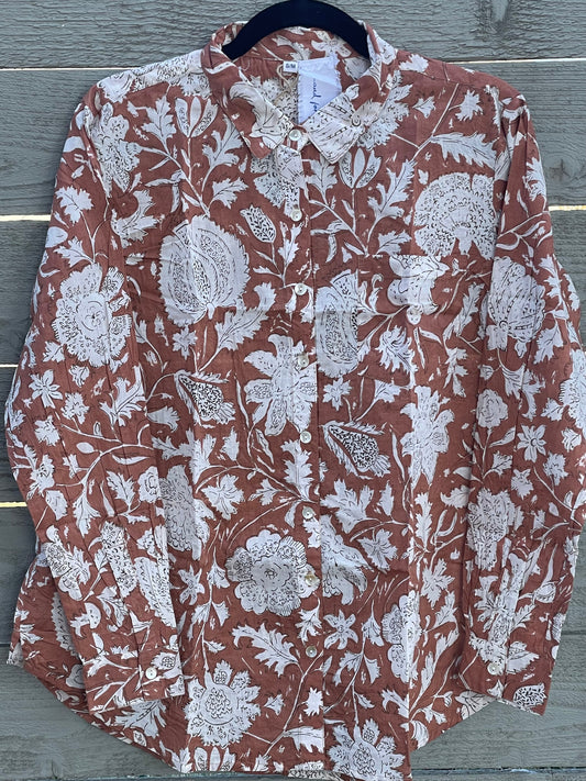 Relaxed Boyfriend Shirt - Cameo Floral Overdye Fawn