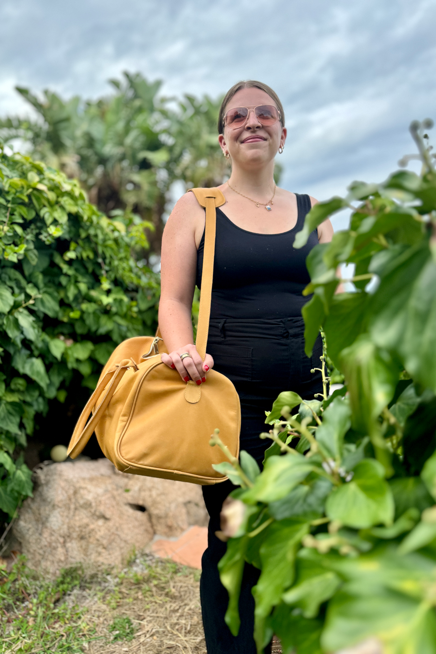 Elevate your travel with our Large Leather Duffel Bag - whether it's a long weekend to visit family or an epic international girls trip! Crafted with high-quality leather, this bag boasts an amazing size that will fit all your travel outfits... and back up outfits... and back up, back up outfits! Now all you'll need is your airline ticket.