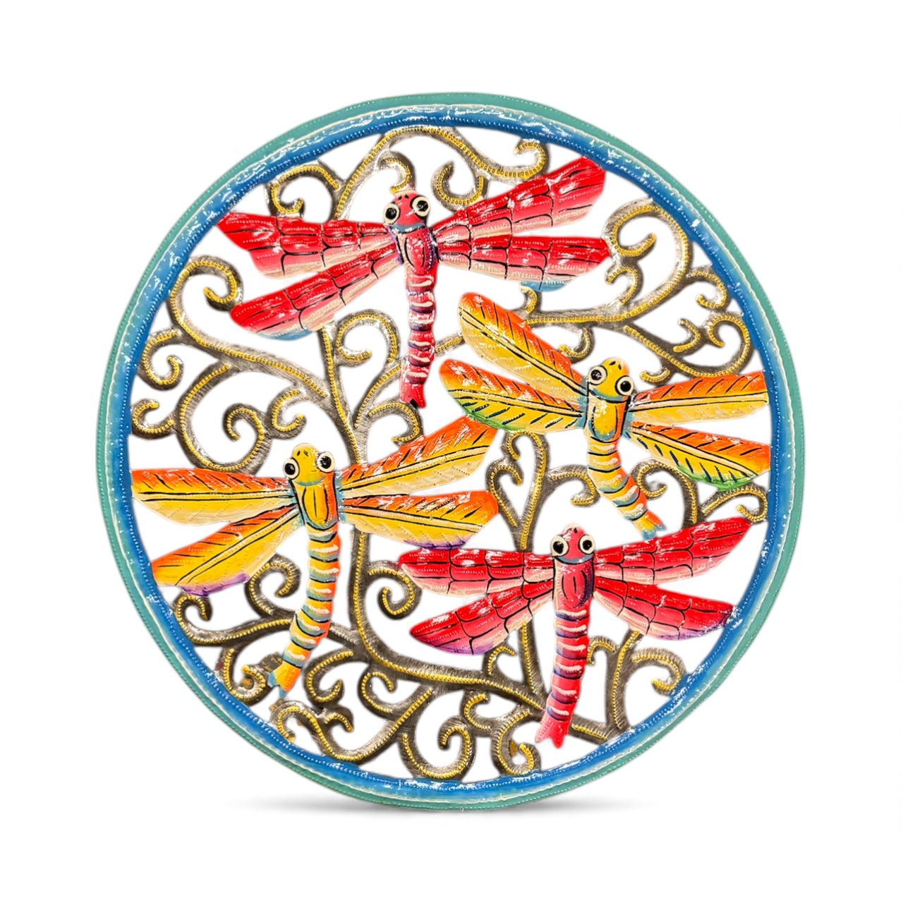 One of the most celebrated Haitian art forms, steel drum art is always a winner! Each piece is hand crafted from recycled 55 gallon drums using only a hammer and a few small tools that resemble railroad spikes. Each piece is a true work of art!
