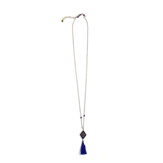 Hmong Blue Diamond Tassel Long Necklace - Thailand
