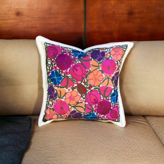 Flower Fields Embroidered Pillow Cover - Guatemala