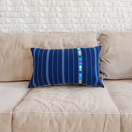 Up-cycled Denim Textile Blue Lumbar Pillow Cover - Guatemala