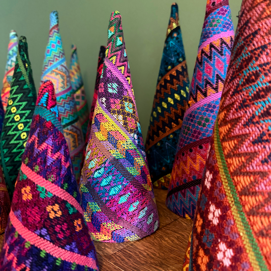 Colorful Handwoven Christmas Tree Set – Vintage Huipil Holiday Decor (Set of 3)