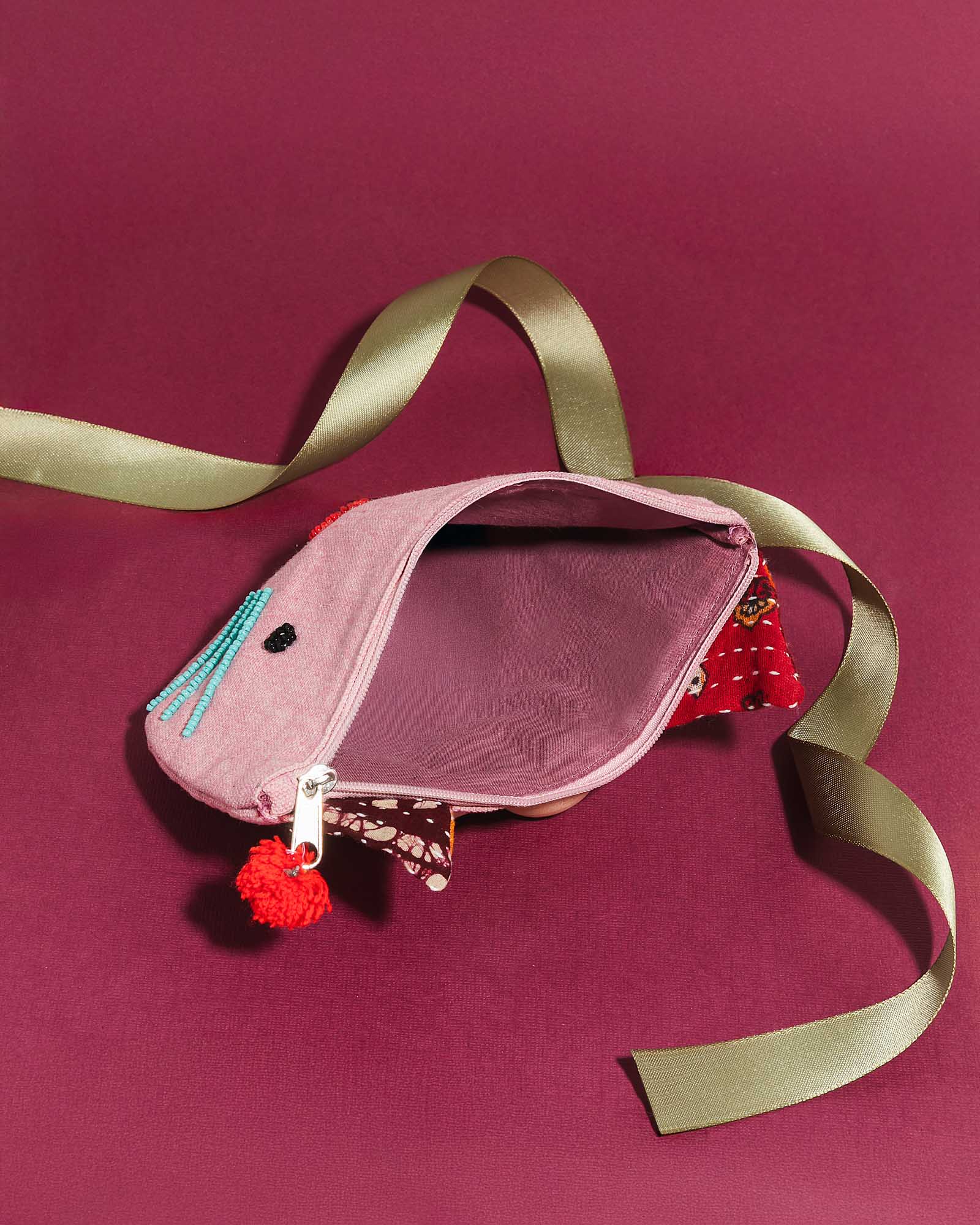 Artisans in India handcraft this eco-friendly artisanal design from upcycled Kantha material, an ancient embroidery and quilting tradition. Each ethically made pouch is one of a kind, and beautifully crafted into a cat shaped pouch. Lined with 100% cotton, this pouch is ideally sized to carry a little one’s everyday essentials with fun style. Every purchase provides safe jobs with fair wages for women in areas of extreme poverty in India.