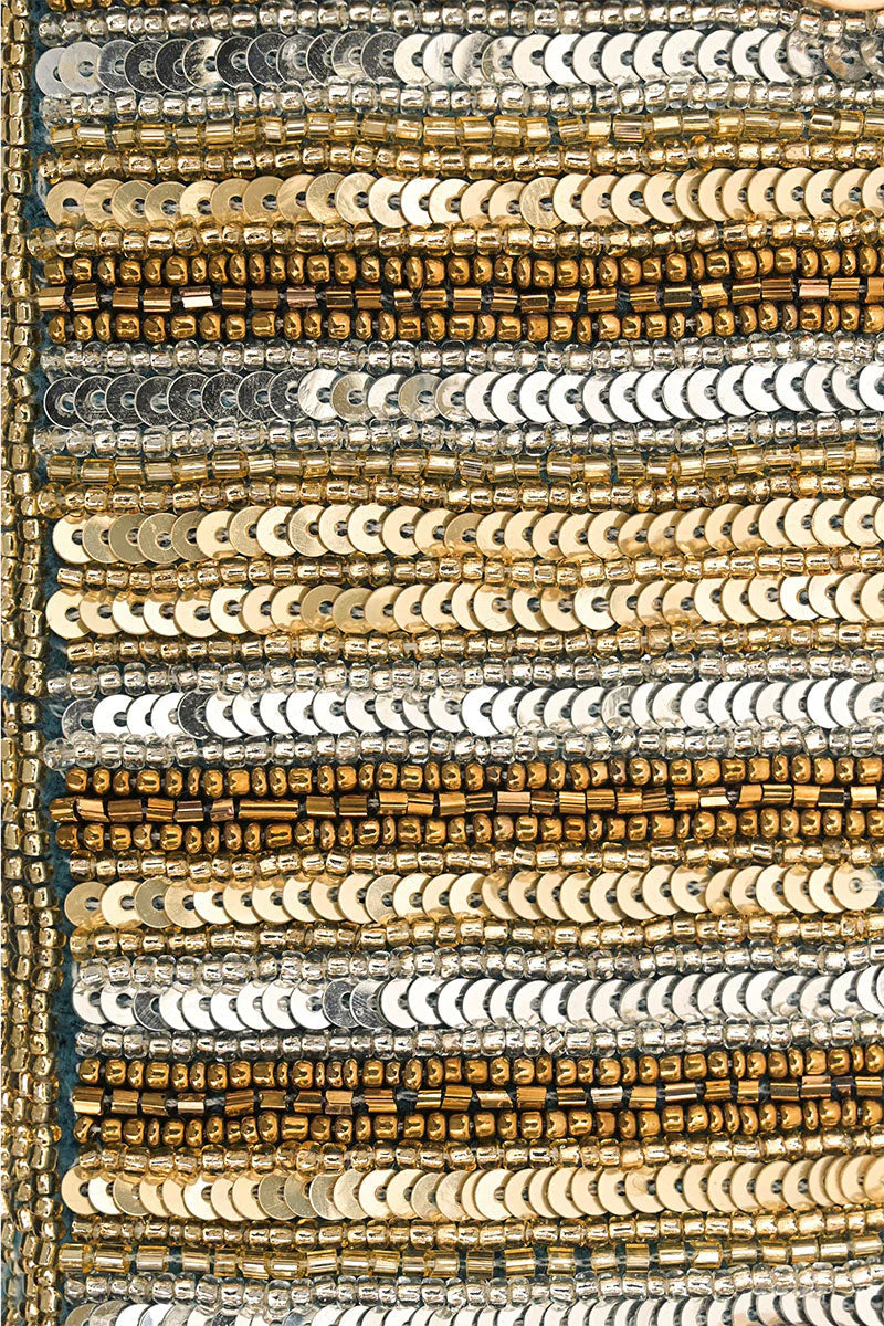 America & Beyond is a handcrafted brand made for the free-spirited woman the one who dances through life with creativity and confidence. We mix the charm of Indian artistry with western silhouettes to create vibrant, feel-good fashion. Fabrics are hand loomed, bags and garments are hand stitched, and all embellishments are done by hand. -Stylish clutch bag featuring a celestial theme with star embellishments on a teal velvet base. -Unique semi-circular cutout handle. -Chain strap for shoulder or crossbody styling. -Inside magnetic closure, lined with teal satin and zipper pocket. -Size: 11" x 6.5" x 2.5"
