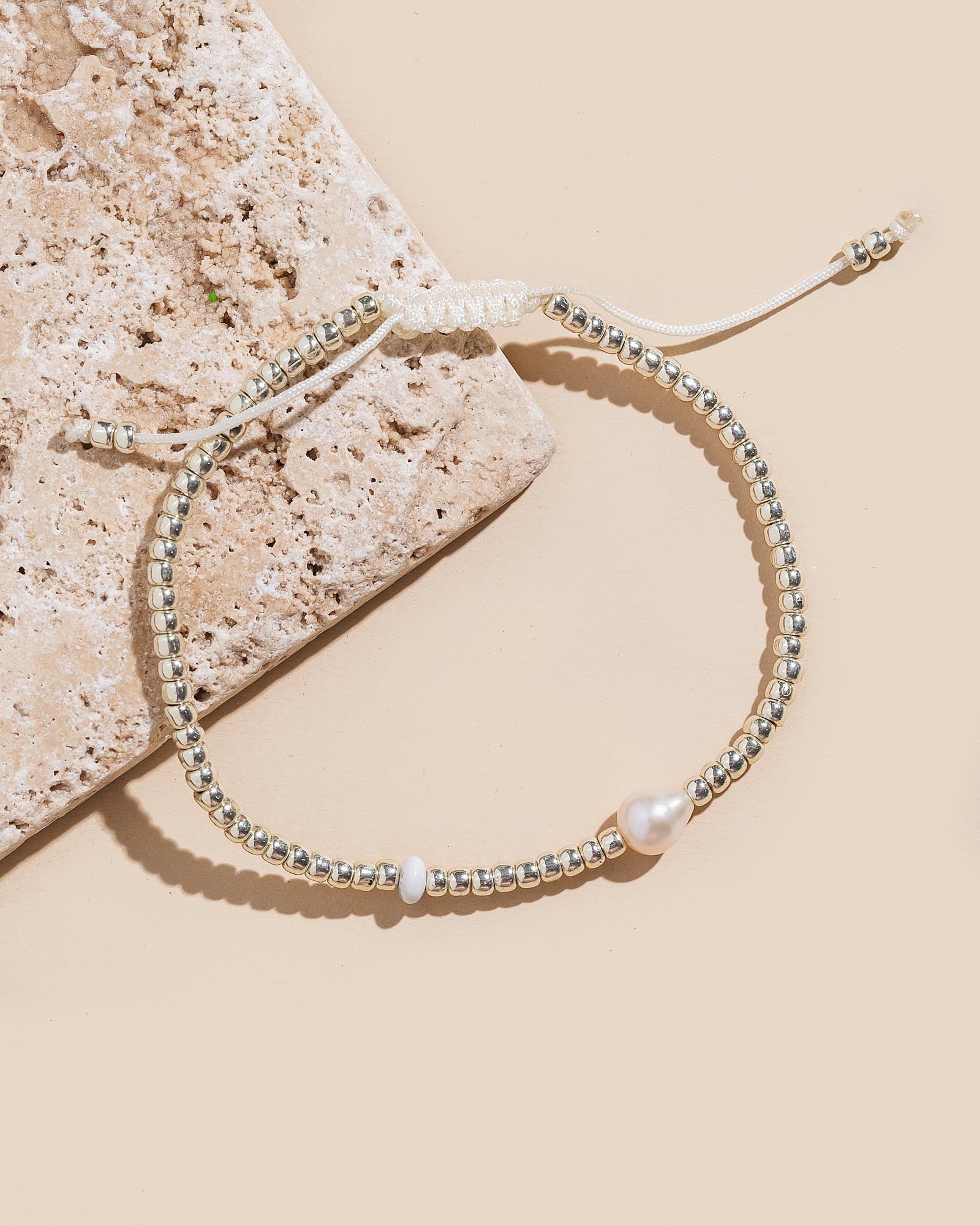 This savings set is creating necessary jobs for acid attack survivors in Cambodia and fighting child marriage in India. The Cambodian Dawn Bracelet is bringing hope to women that have experienced great suffering. The champagne-colored bracelet includes a freshwater pearl and a howlite stone throughout the beaded design.