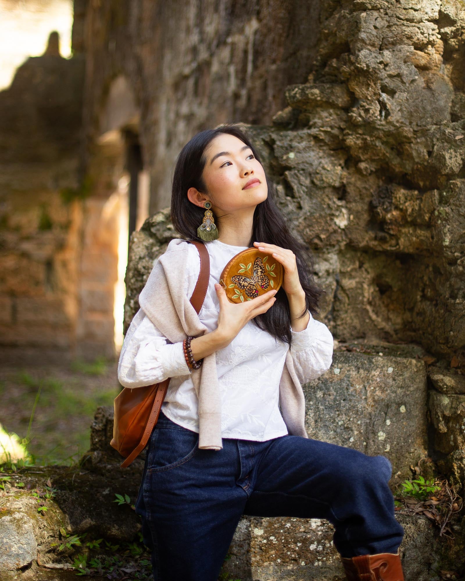 Save 15% off this week only when you shop the Chrysalis Savings Set! The stunning velvet Chrysalis Mini Pouch features a detailed, embroidered butterfly. With the Chrysalis being a symbol of life-changing transformation, every purchase of the Chrysalis Mini Pouch creates safe jobs with fair wages for women in areas of extreme poverty in India where vulnerable women are often exploited by sweatshops and human traffickers.