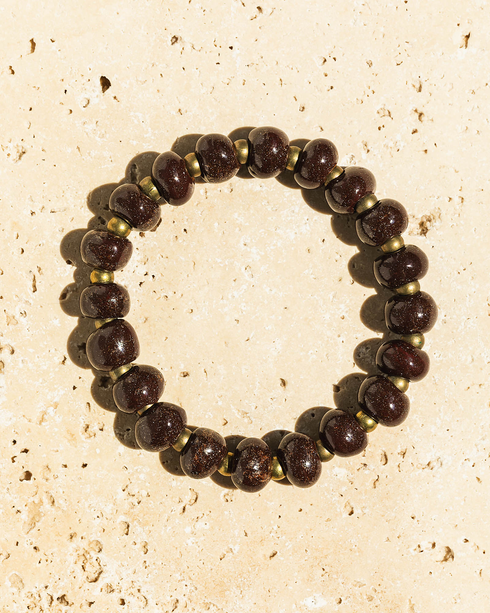 Measurements: Chrysalis Mini Pouch: 6" W x 4 3/4" H. Forged Light Bracelet: Stretch 6 3/4" Materials: Chrysalis Mini Pouch: Velvet, Neelam thread, Antique brass. Forged Light Bracelet: Haitian clay beads, Brass beads Color: Chrysalis Mini Pouch: Gold, Multicolored. Forged Light Bracelet: Brown, Gold