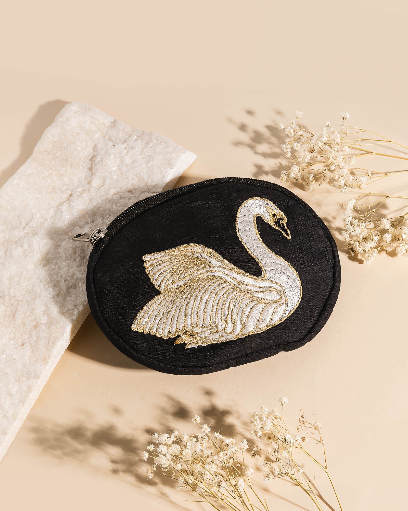 Purchase this set to save on Artisan-made designs! The stunning Cygnus Mini Pouch has a detailed, hand embroidered white swan. Each Mini Pouch is handmade by women in India earning a dignified wage for their work. Also included in the Cygnus Savings Set is the Elva Rose Bracelet handcrafted by women escaping brothels in East Asia. The multicolored, jasper stone beaded bracelet includes square 18k gold-plated accent beads and one round gold bead for a gorgeous look! Each design is created by women who are earning a dignified wage for their work.