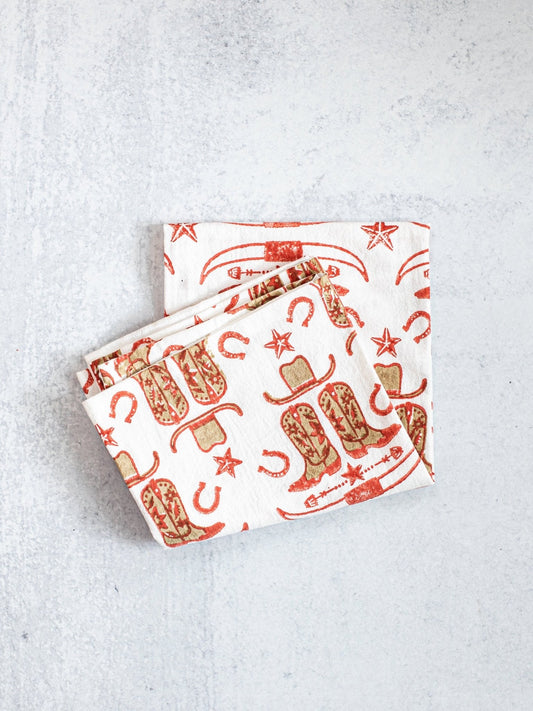 Tea Towel (Ivory) - Cowgirl Boots, Terracotta & Chai