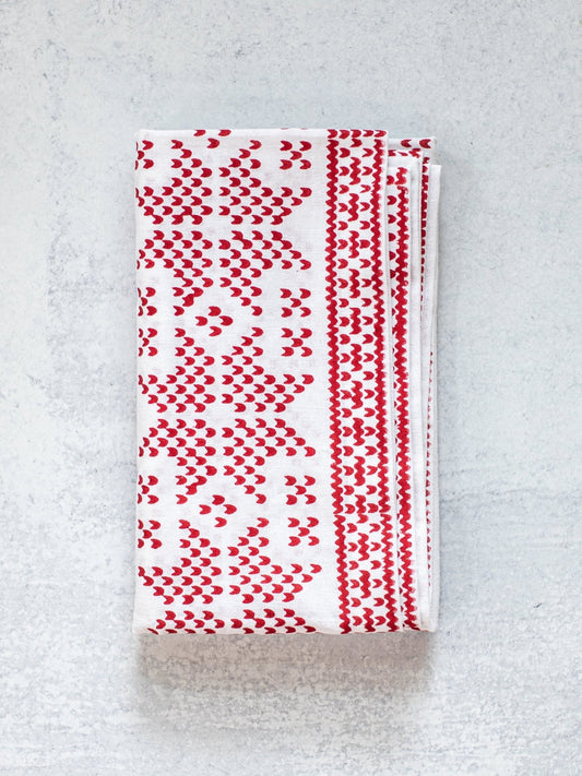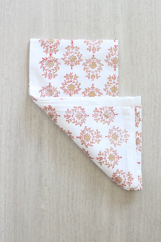 Tea Towel - Lotus, Red & Gold