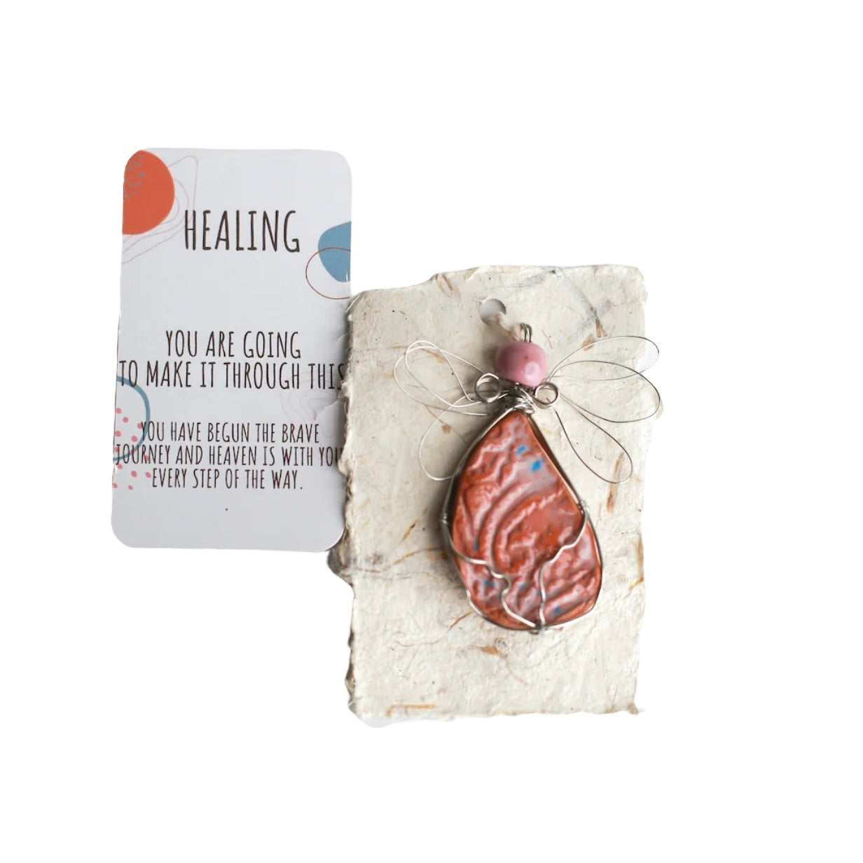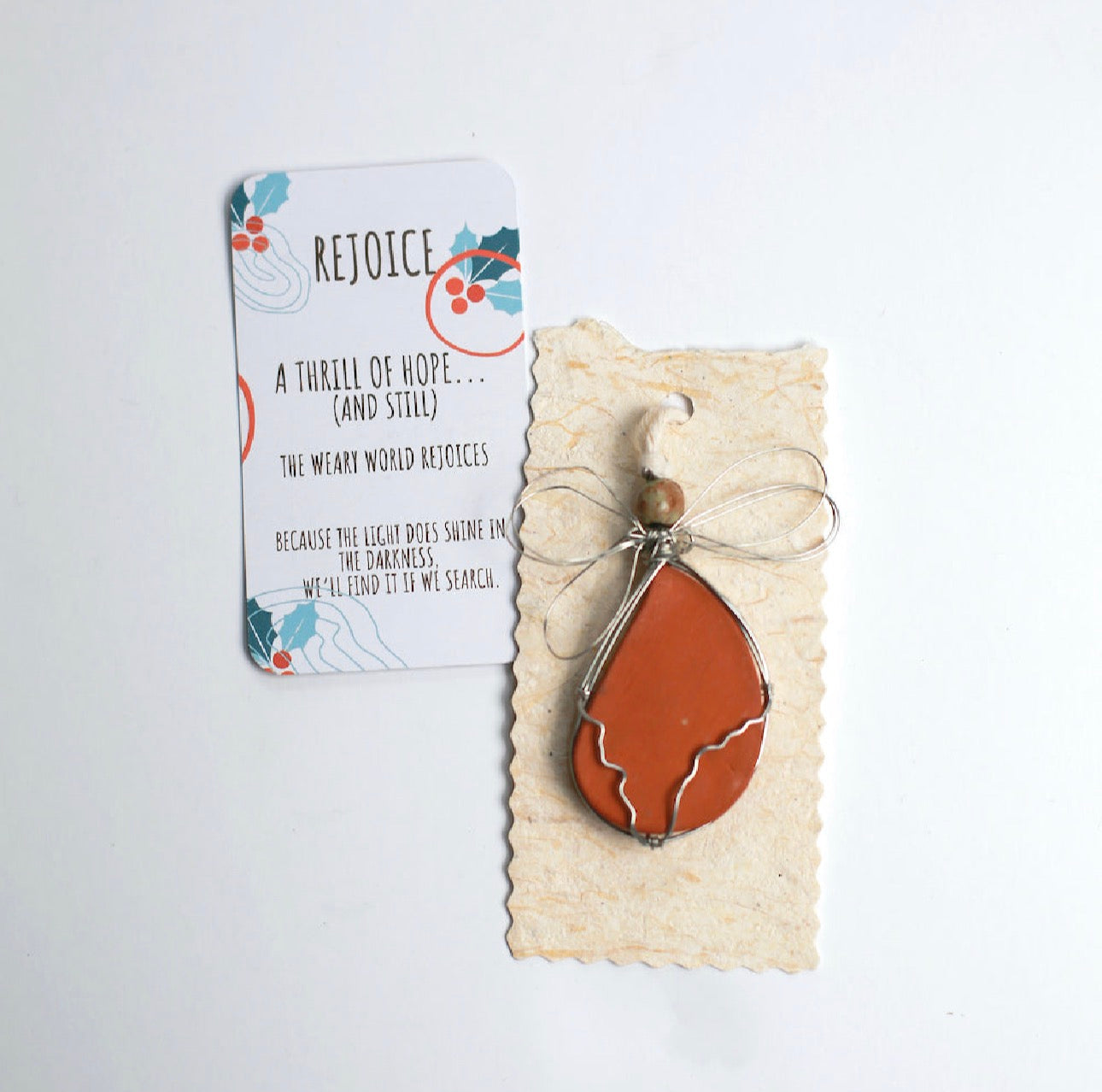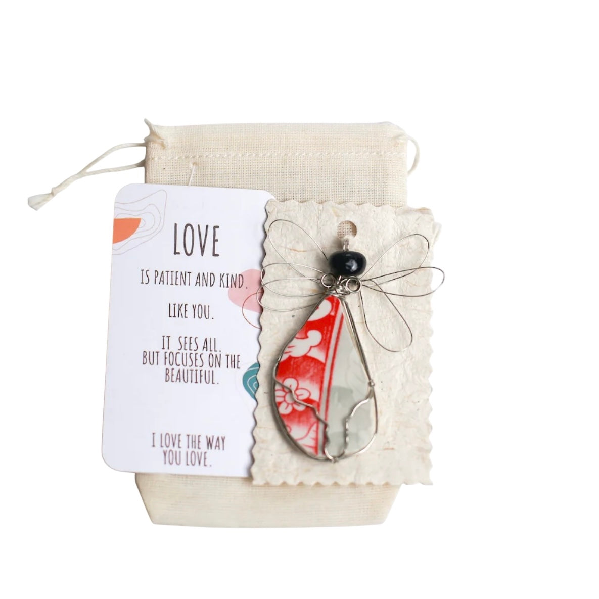 The Story: These Giving Angels combine the beauty of our handmade, upcycled ceramic Angels with gorgeous banana paper from Haiti and a sentiment card. An encouraging gift for anyone!
