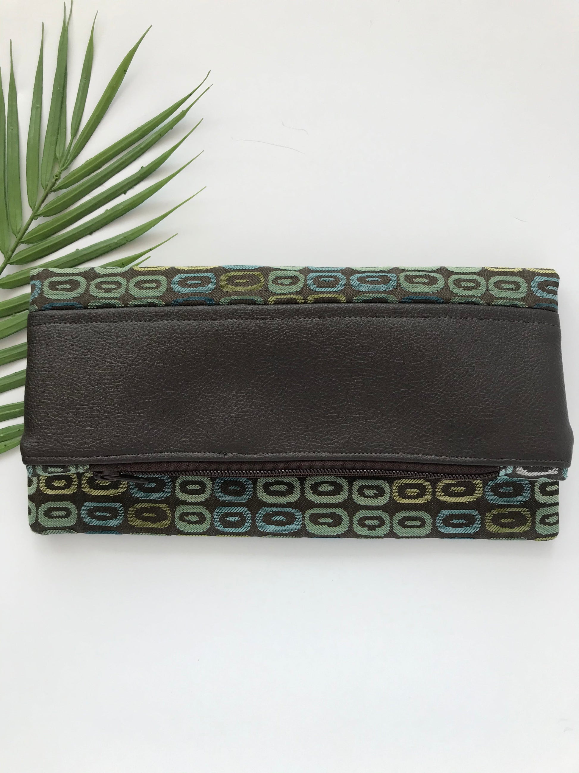 Originally only sold as a set with our ale tote, the ale clutch is breaking away as its own product after we heard so many raving reviews from customers who love her size and functionality! Each ale clutch features a vegan leather top allowing it to naturally fold into the perfect size of a carrying clutch. Folded down, the clutch perfectly fits all of the essentials like your keys, phone, lip gloss, ID and credit cards. The ale clutch is also the perfect travel companion! She can easily hold your jewelry or help you organize a larger bag with her sleek style and zippered closure.