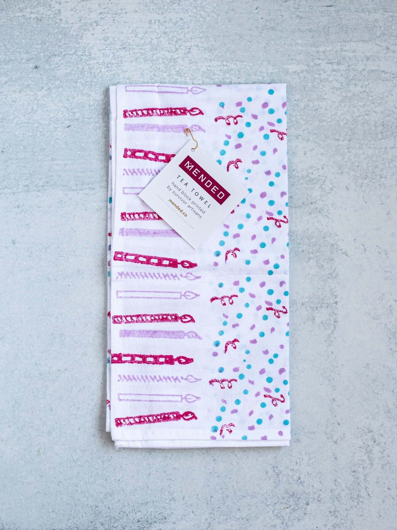 Nothing brightens up a kitchen or guest bathroom more than Mended's vibrant tea towels. Each tea towel is 100% floursack cotton and hand block printed to be a stunning decor item or a work horse to help you clean! Mix and match with any of our other Mended tea towel patterns to create your very own kitchen or bathroom style or create the most stunning gift for family and friends.