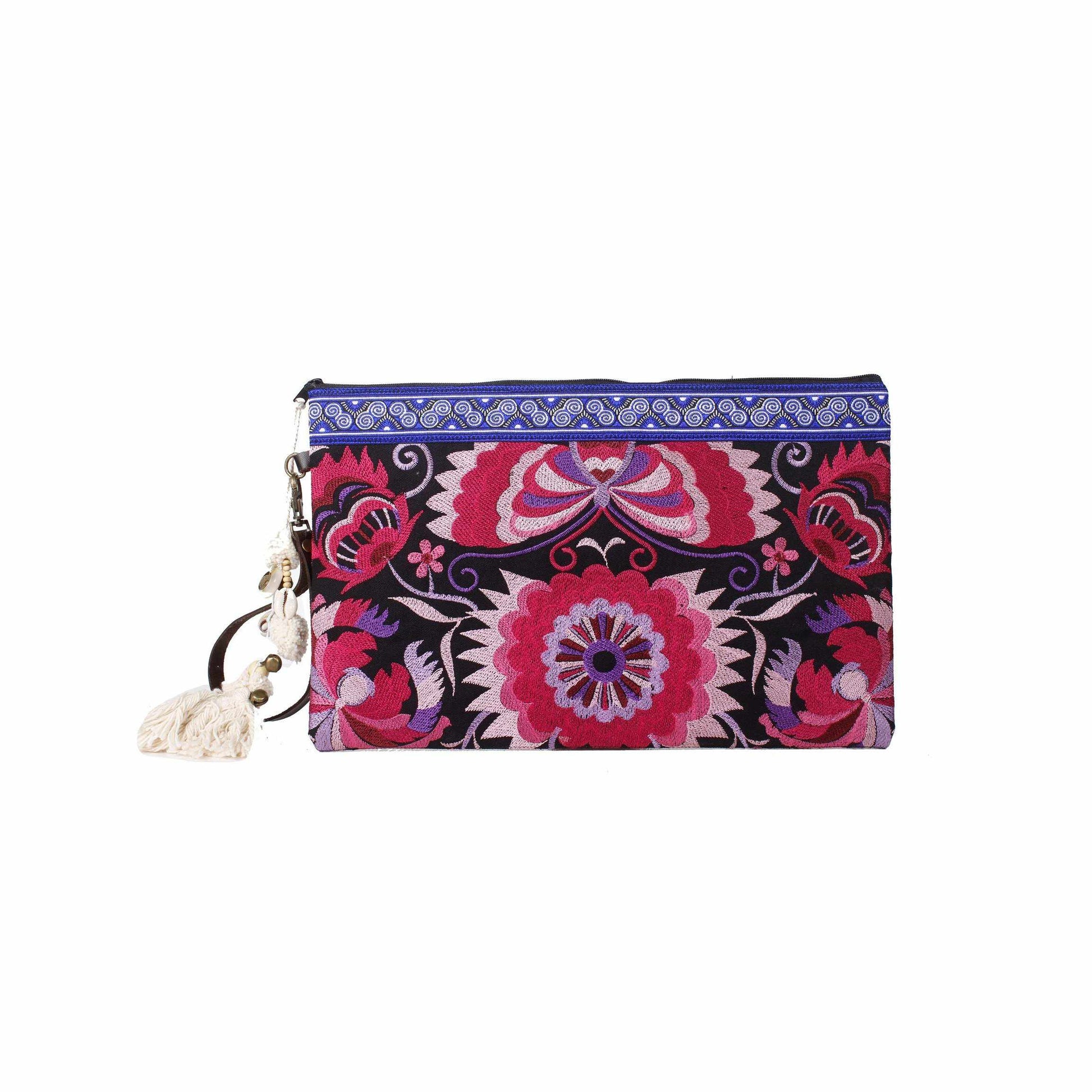 Botanica Embroidered Wristlet with PomPoms - Thailand