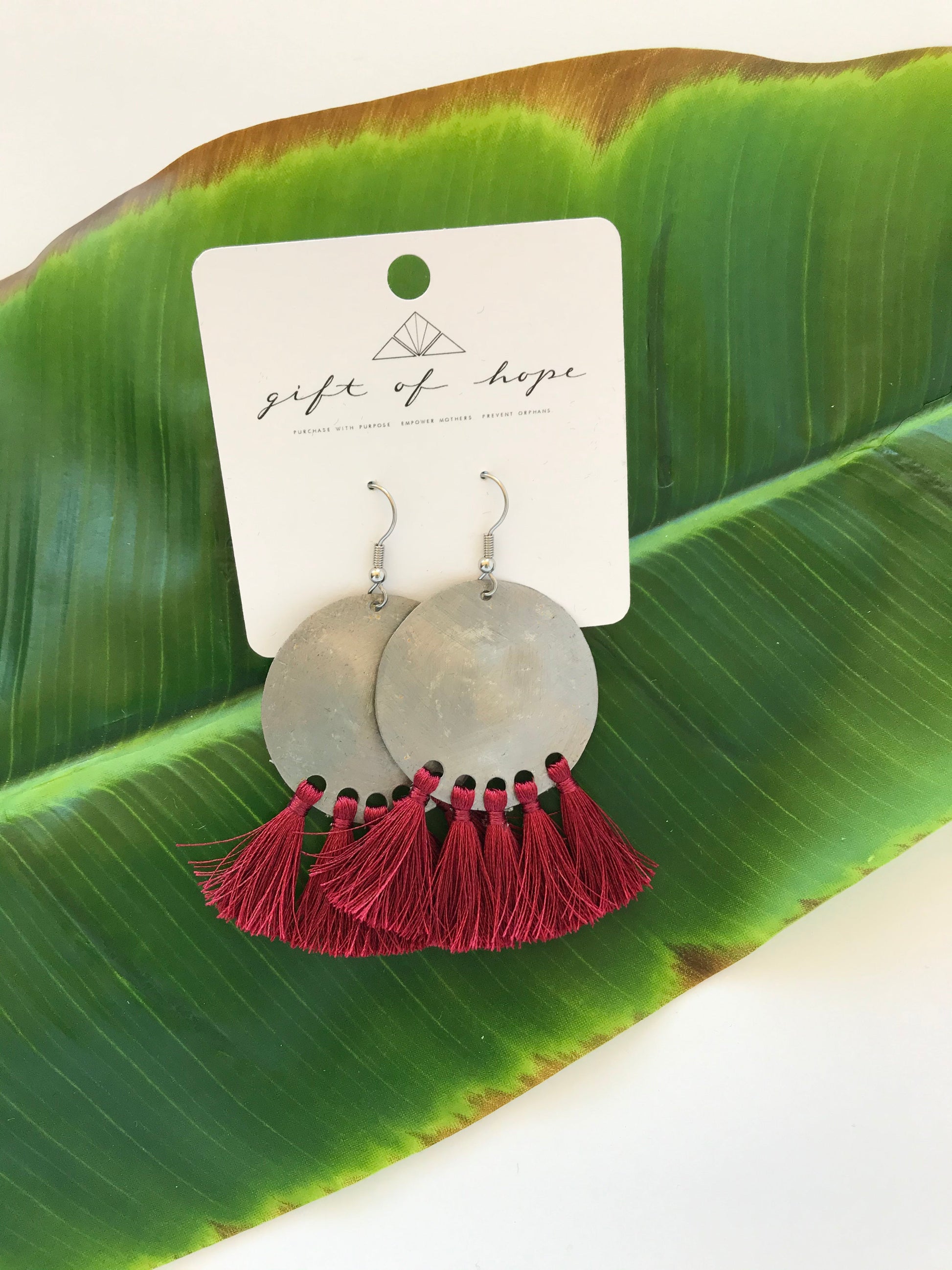 Bottle caps are being repurposed in a whole new way! These up-cycled earrings will be your go-to for a fun flare to any of your favorite casual outfits. These fan tassel earrings are a Gift of Hope fan favorite! They come in a variety of colors from neutrals like white and black, to trending seasonal favorites! We can’t wait to see which color you choose!