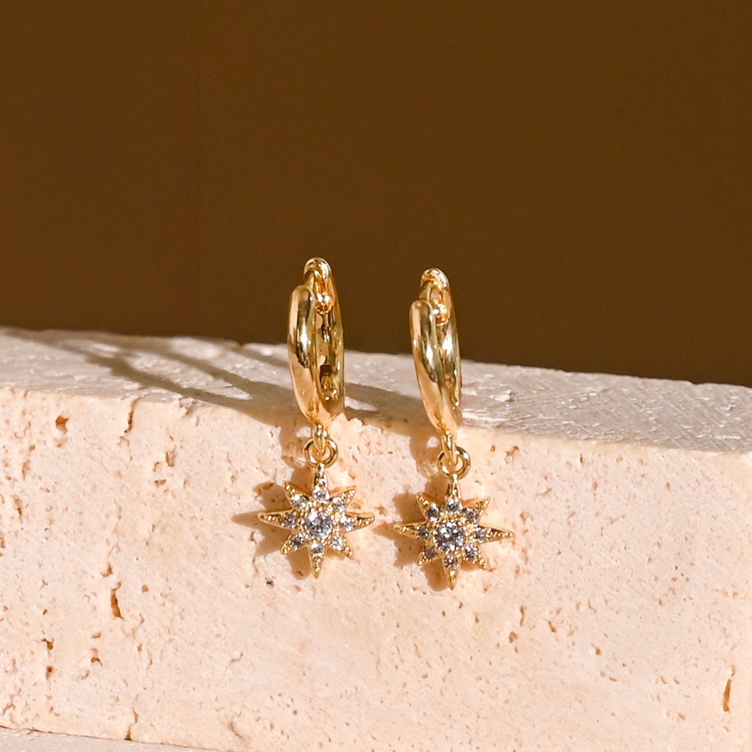 Our Brilliance Star Huggies are designed to catch every eye—featuring a delicate zircon-paved North Star that dances from a mini 14K gold-plated hoop with a secure hinge closure. Perfect for adding a subtle sparkle to your everyday look or a radiant touch for a night out. With every purchase, wear, and gift of the Brilliance Star Huggies, you help keep the light of hope shining for women escaping exploitation and courageously beginning a new life. Thank you for making a difference. May you shine bright, every day!
