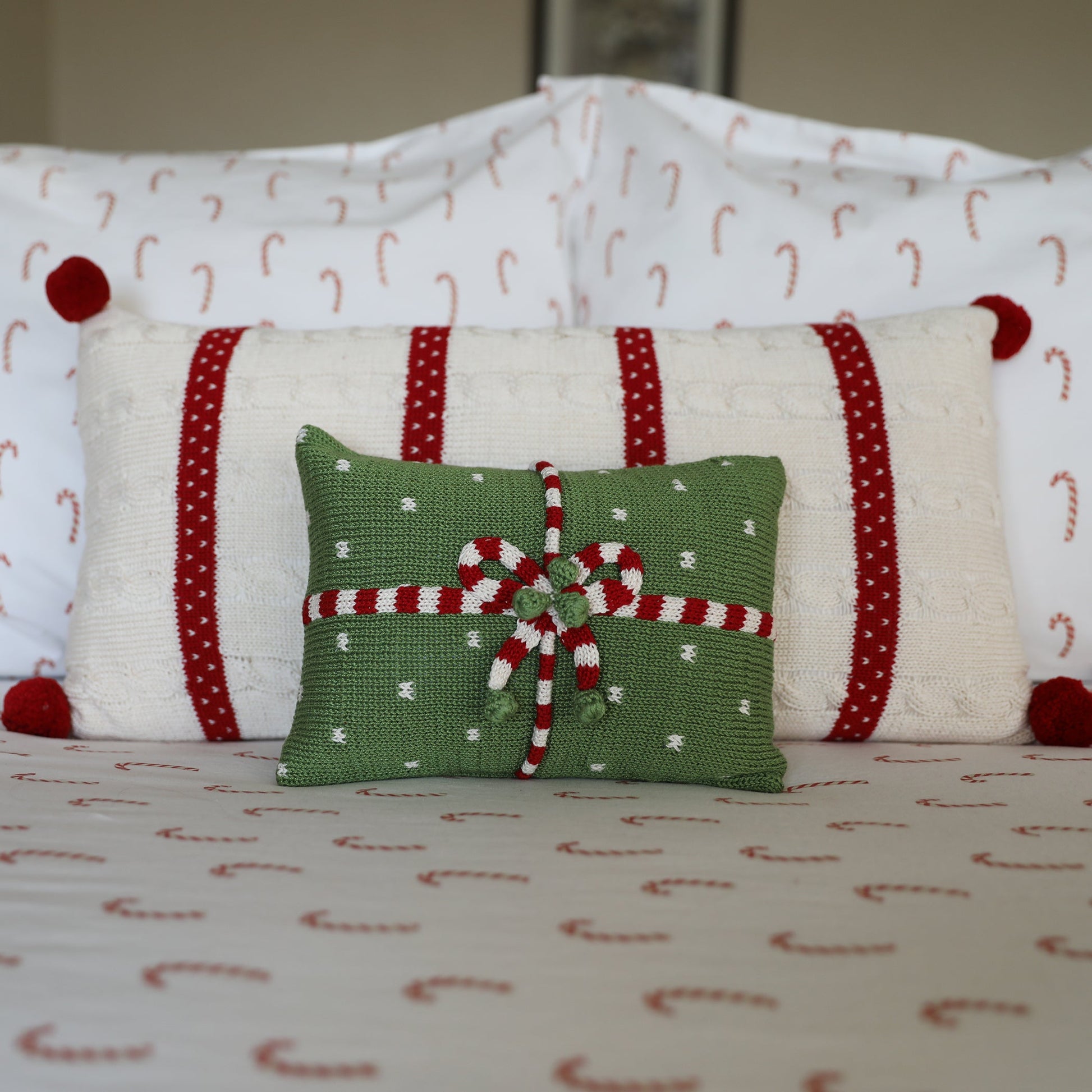 Crafted from high-quality cotton yarn, this pillow adds a cozy, seasonal flair to any room. Whether placed on a couch, chair, or bed, its vibrant colors and unique design are sure to catch the eye and bring holiday cheer to your space.