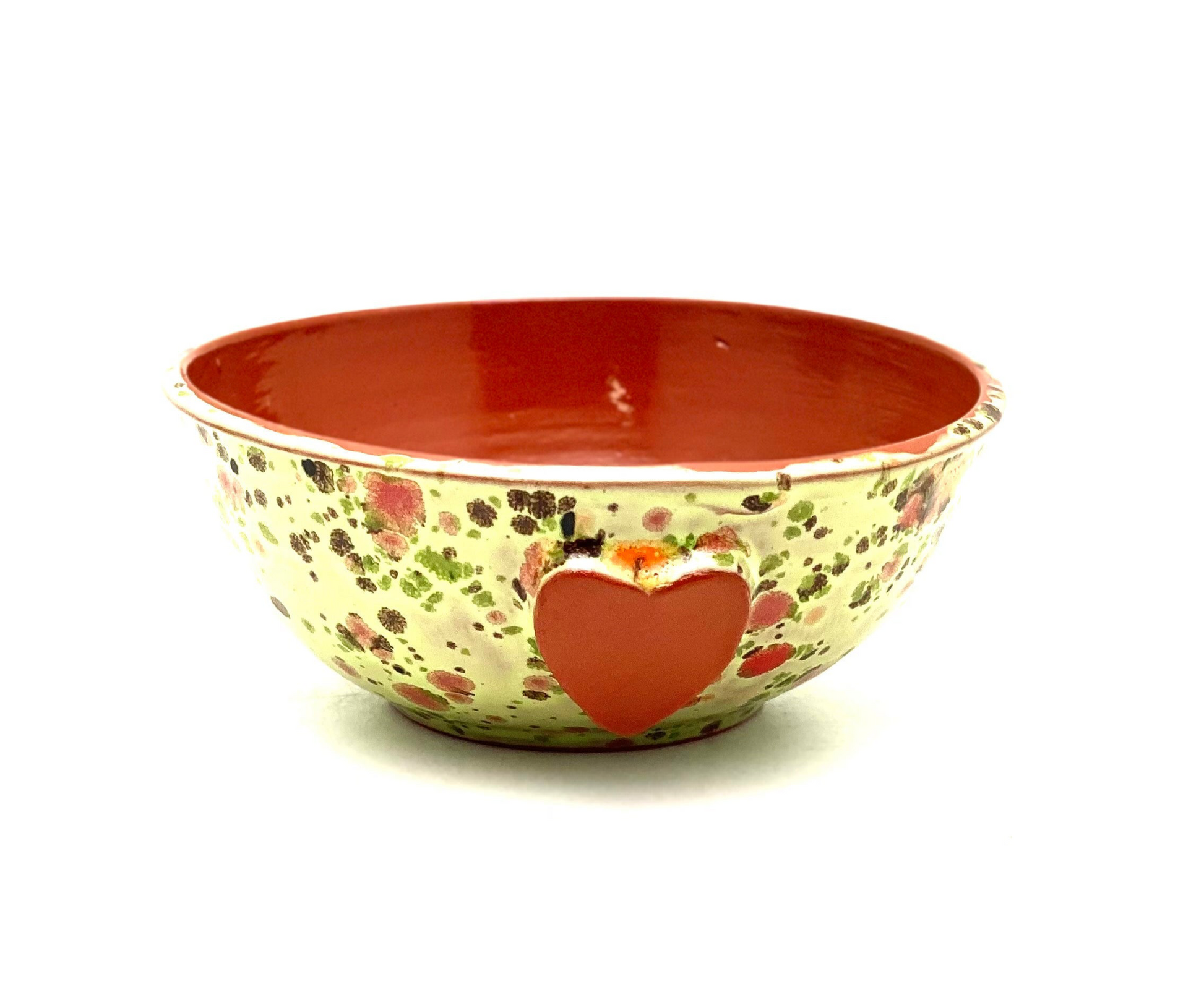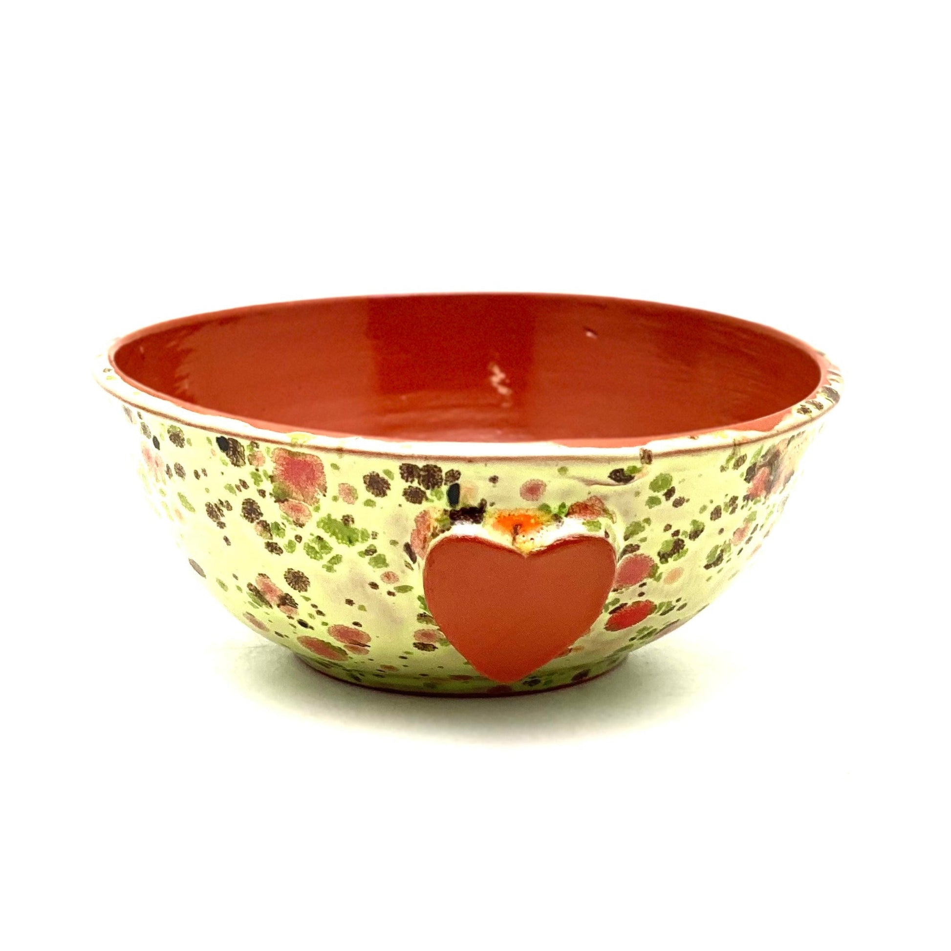 Our ceramic heart bowls are slightly smaller than the classic holding about 6 oz of food. Perfect for a side salad or a scoop of ice-cream. Each handmade bowl is kiln fired and finished with food safe, lead free glaze.
