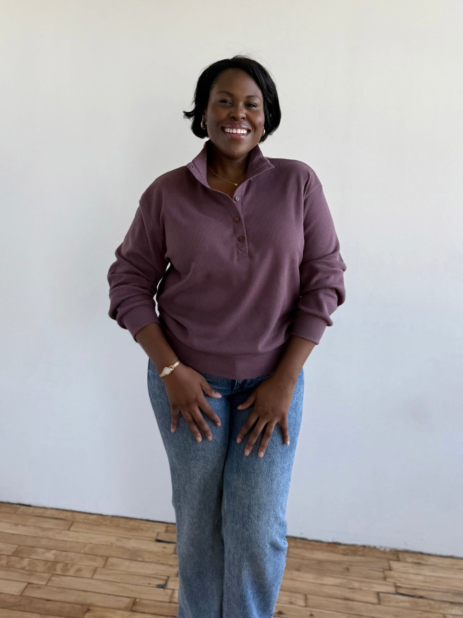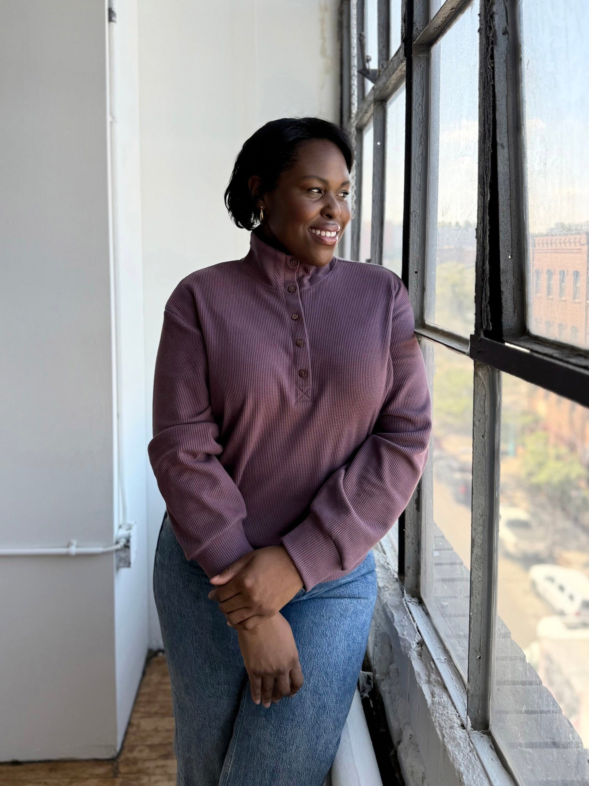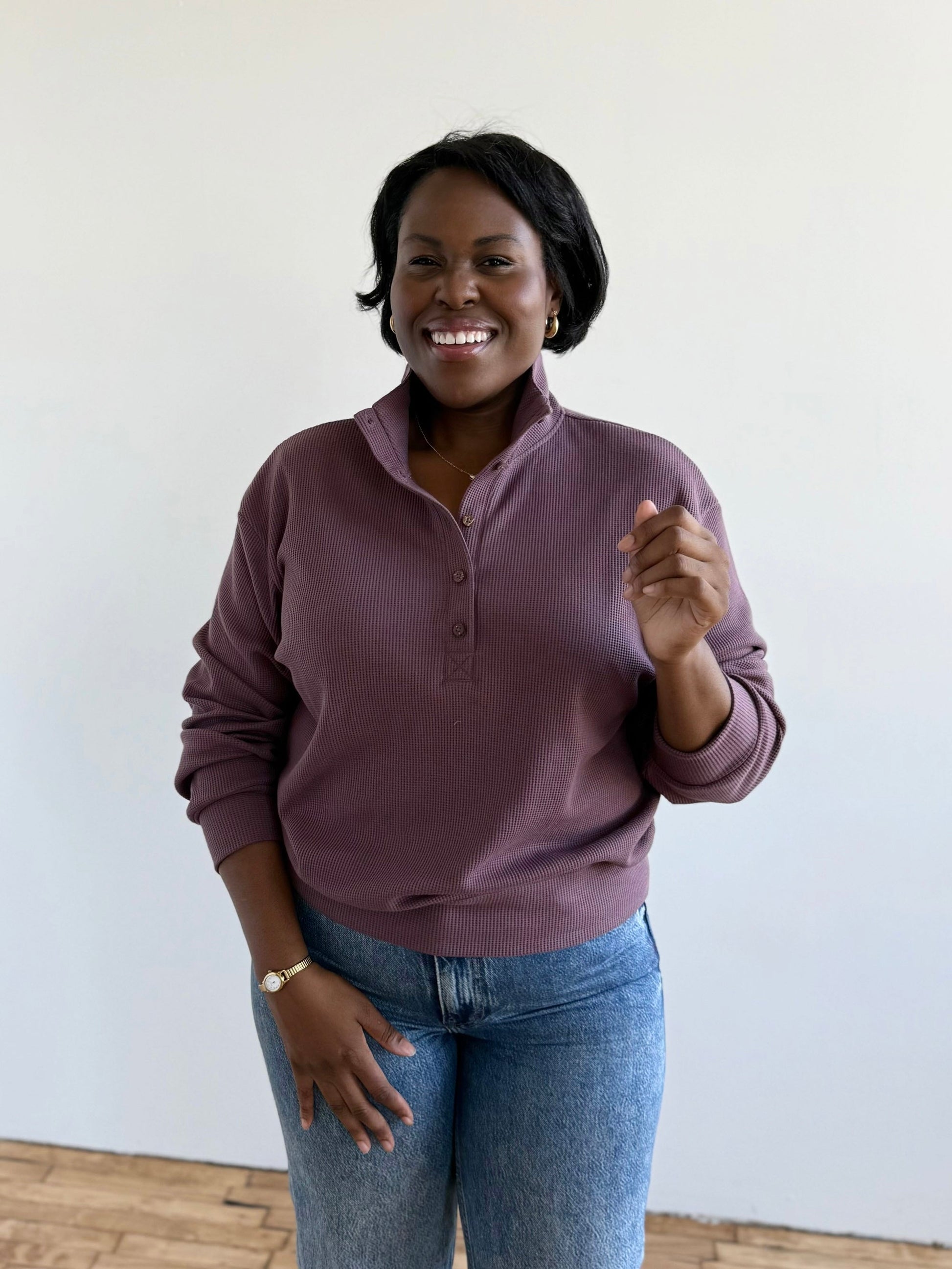 The collar and button-front detail give off that effortlessly polished vibe, while the cinched waist adds a flattering, feminine touch. It's the ideal mix of professional and laid-back—think grandpa chic, but way more stylish. And that waffle knit fabric? It’s more than just a pretty texture—it’s your new go-to for staying warm on those chilly days without sacrificing style.