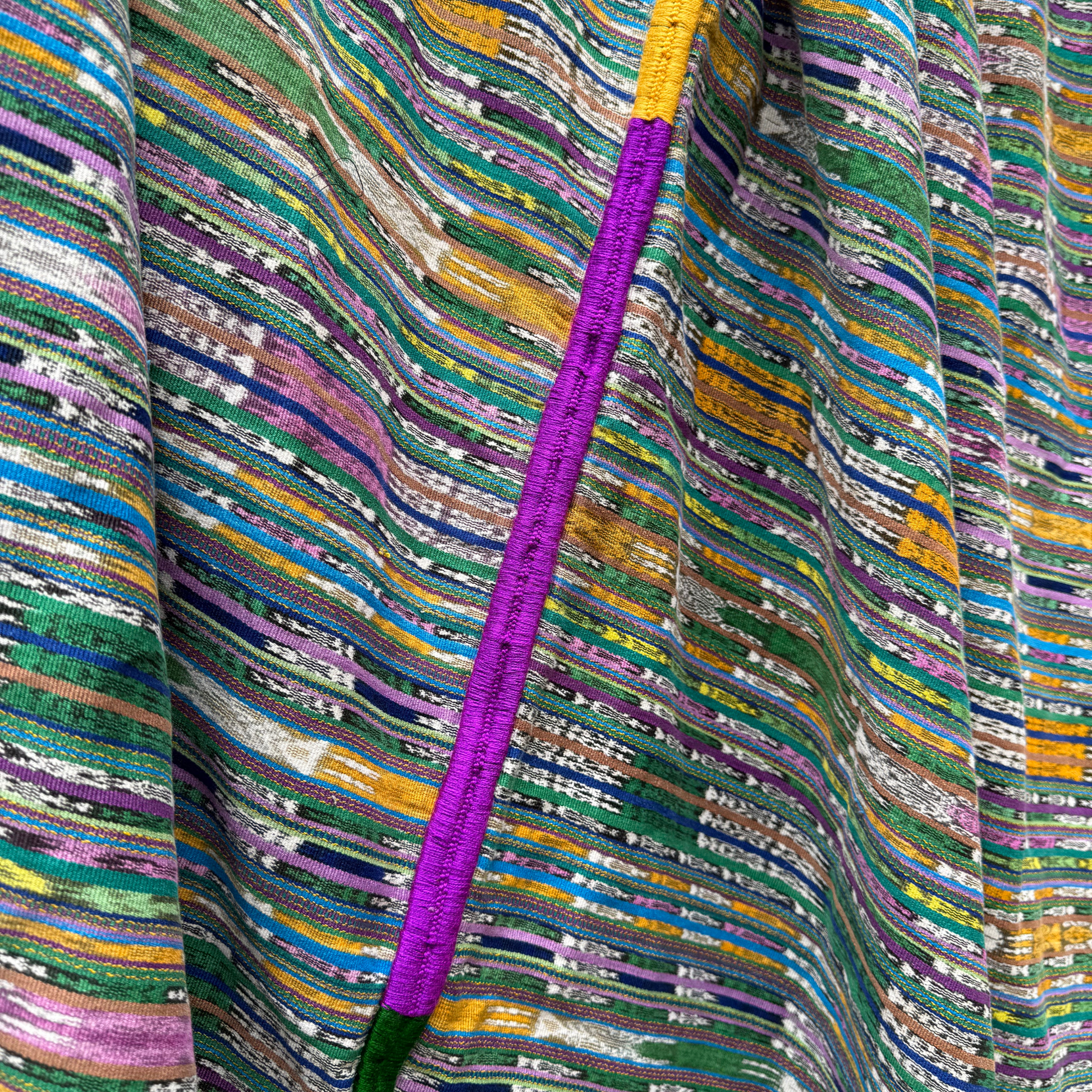 Wrap yourself in one of Intertwined’s ultra-cozy, colorful handwoven cotton blankets, crafted from repurposed Mayan cortes (skirts) worn by skilled artisans in Guatemala. Each sustainable, ethically made blanket features a vibrant hand-embroidered pattern down the center, perfect for brightening your home décor. Ideal for cozy nights indoors, picnics, or even as a unique and colorful tablecloth, this one-of-a-kind, artisan-crafted blanket by the Ruth & Naomi team brings warmth, beauty, and joyful craftsmanship to every space.