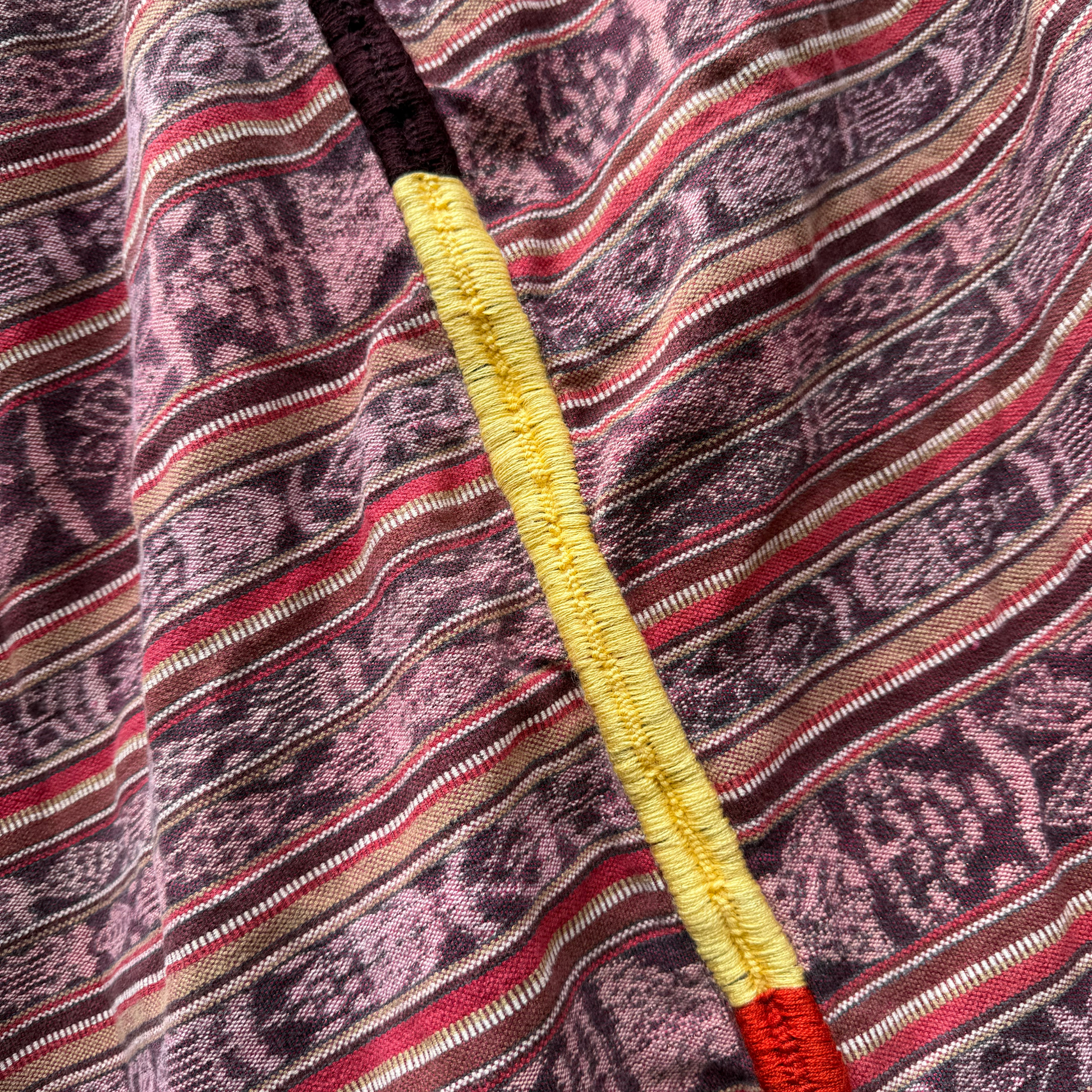 Wrap yourself in one of Intertwined’s ultra-cozy, colorful handwoven cotton blankets, crafted from repurposed Mayan cortes (skirts) worn by skilled artisans in Guatemala. Each sustainable, ethically made blanket features a vibrant hand-embroidered pattern down the center, perfect for brightening your home décor. Ideal for cozy nights indoors, picnics, or even as a unique and colorful tablecloth, this one-of-a-kind, artisan-crafted blanket by the Ruth & Naomi team brings warmth, beauty, and joyful craftsmanship to every space.