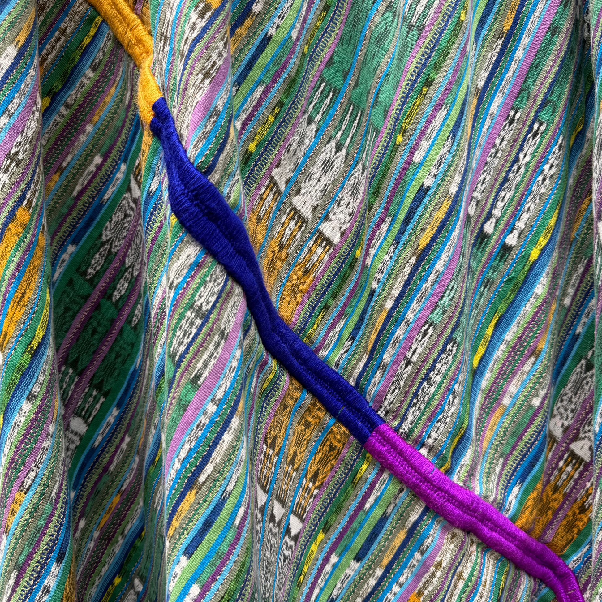 Wrap yourself in one of Intertwined’s ultra-cozy, colorful handwoven cotton blankets, crafted from repurposed Mayan cortes (skirts) worn by skilled artisans in Guatemala. Each sustainable, ethically made blanket features a vibrant hand-embroidered pattern down the center, perfect for brightening your home décor. Ideal for cozy nights indoors, picnics, or even as a unique and colorful tablecloth, this one-of-a-kind, artisan-crafted blanket by the Ruth & Naomi team brings warmth, beauty, and joyful craftsmanship to every space.