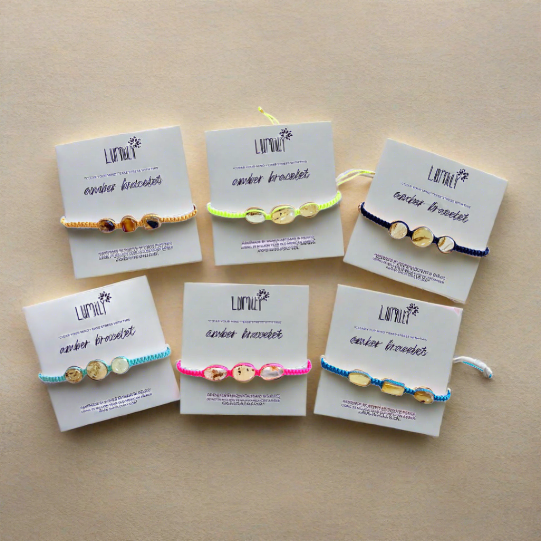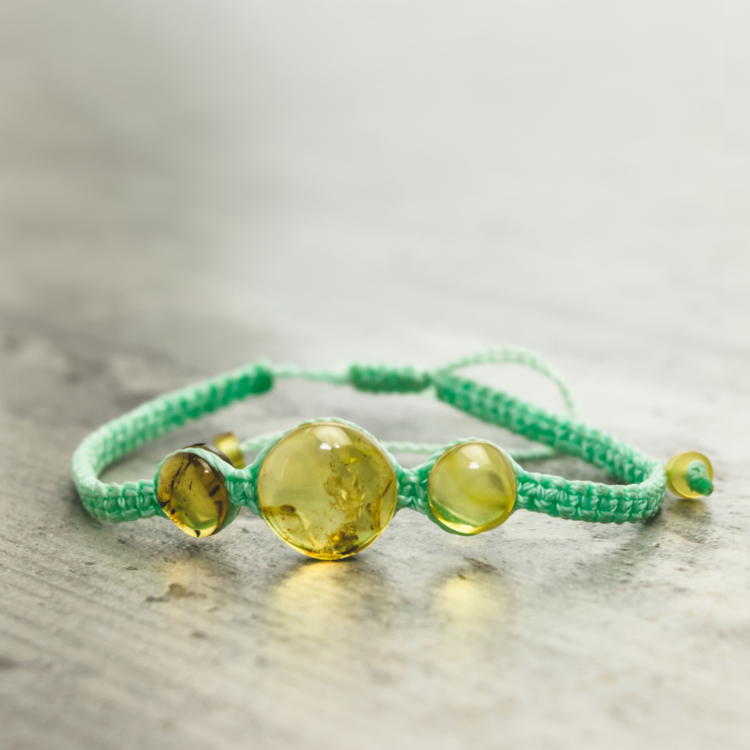 The bracelet features an adjustable slide knot made of colorful cotton cord, making it easy to fit most wrist sizes. Order now and bring the protective power of Amber into your life!