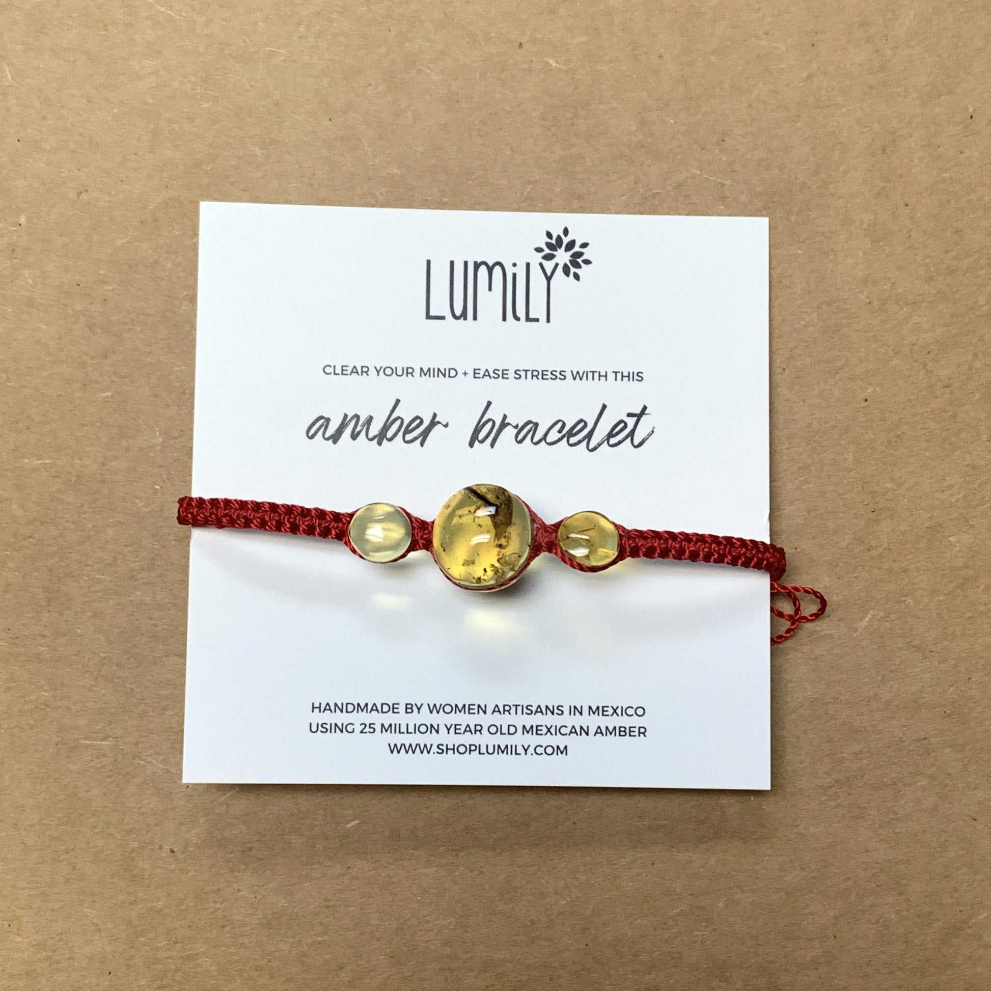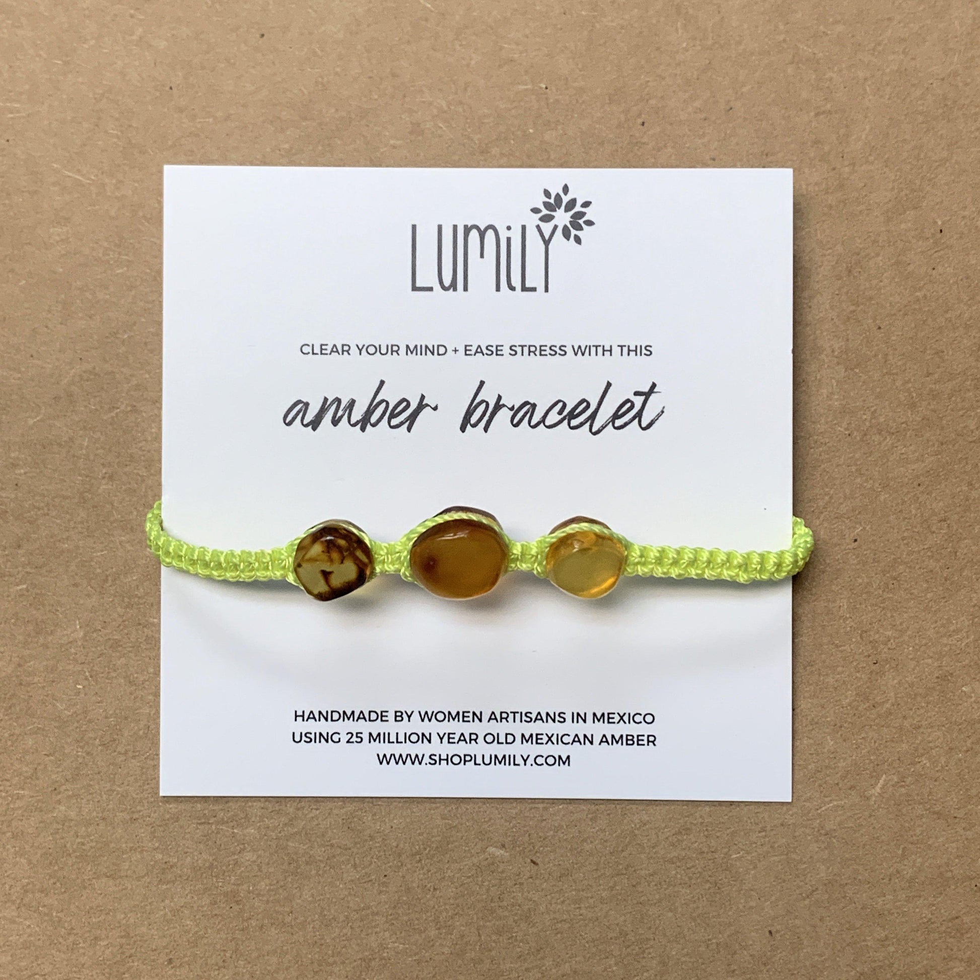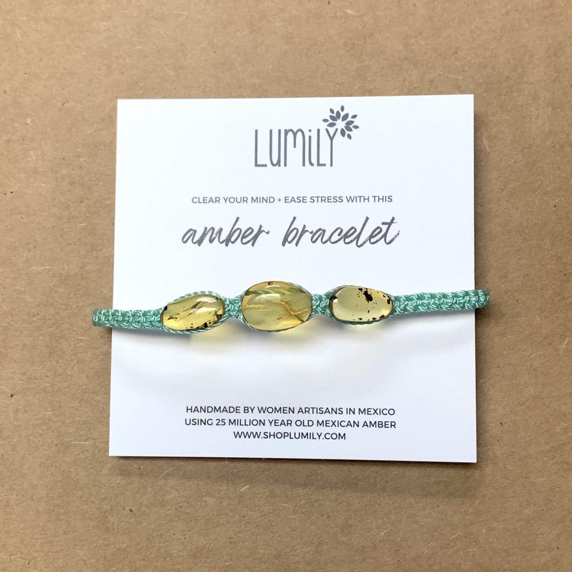 Handwoven with love by Erika in southern Mexico, this colorful bracelet features an authentic piece of 20 million-year-old Mexican amber from Simojovel, a small town in Chiapas. Each piece is unique in shape and color, and comes with a card sharing the story of amber and how to wear it.