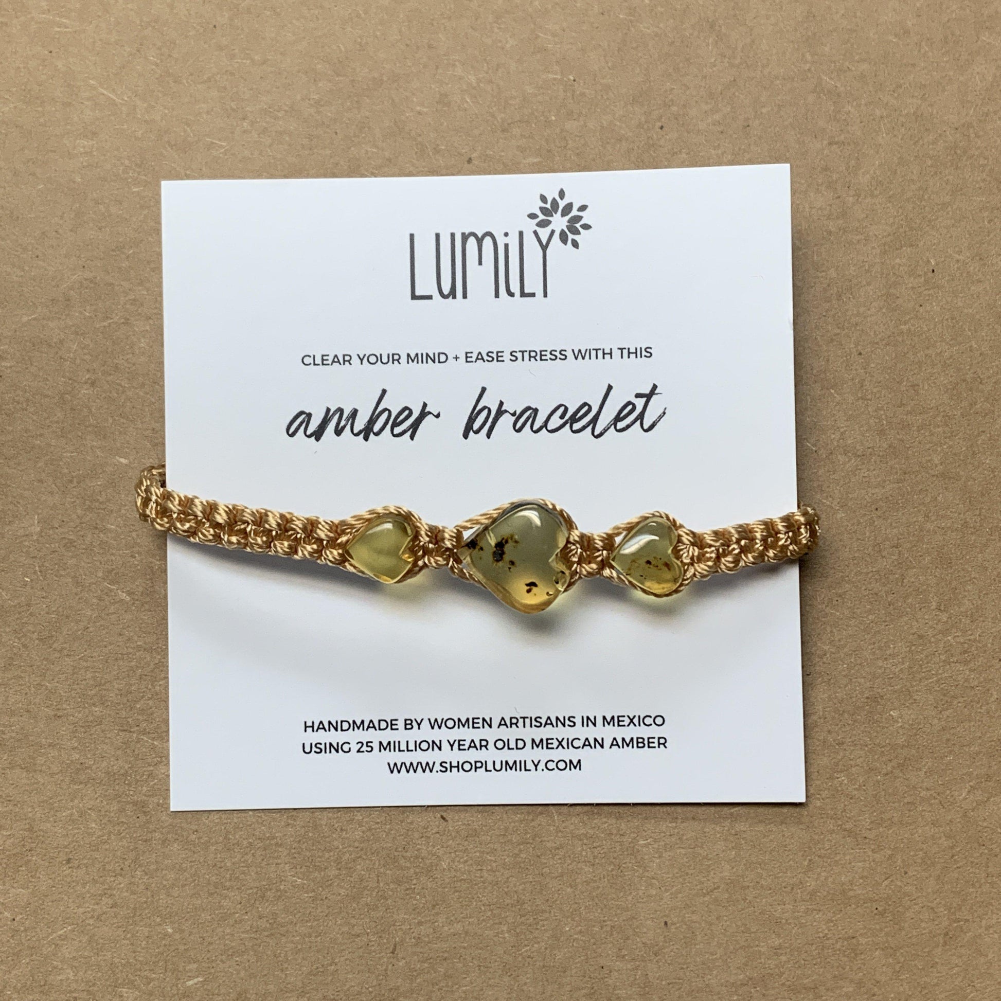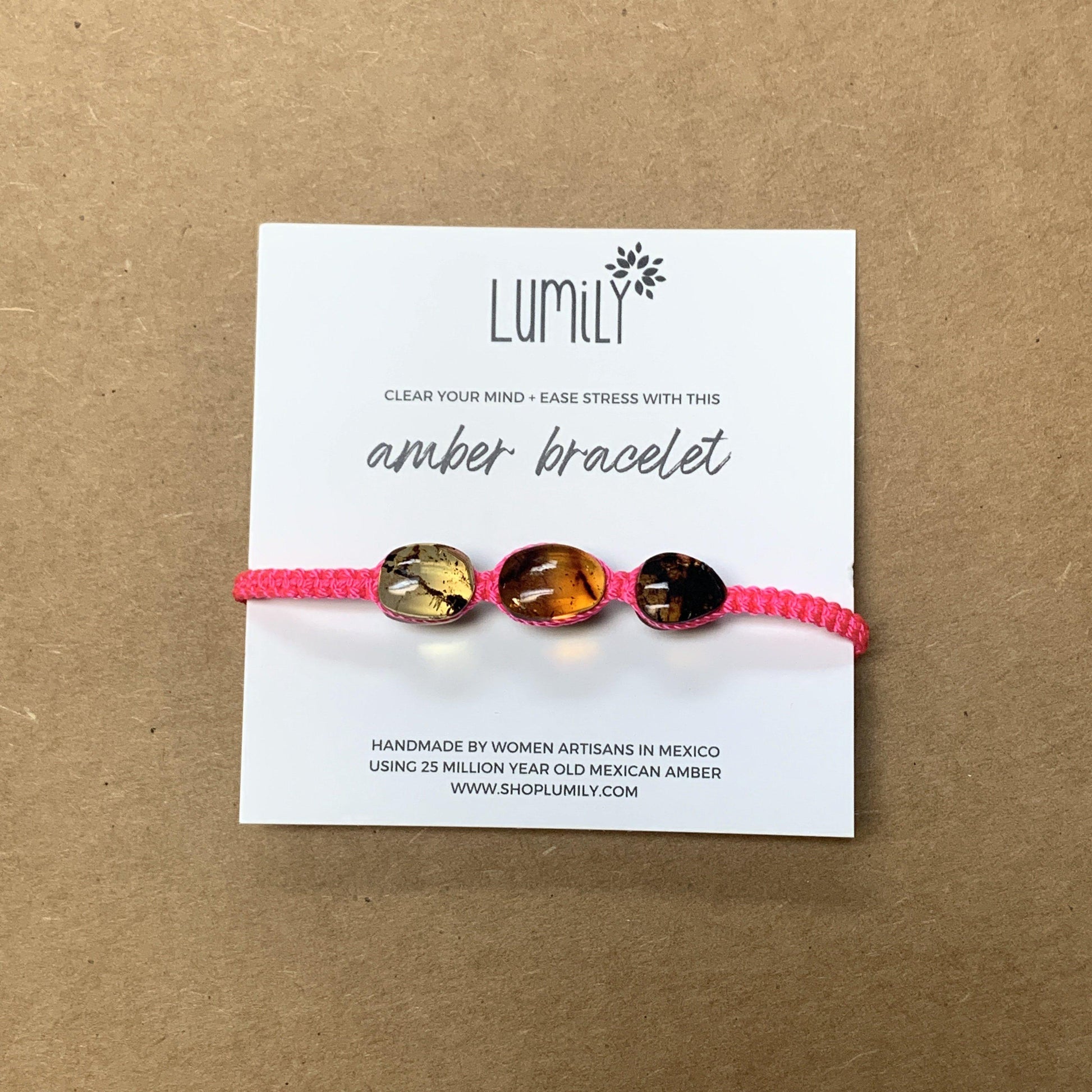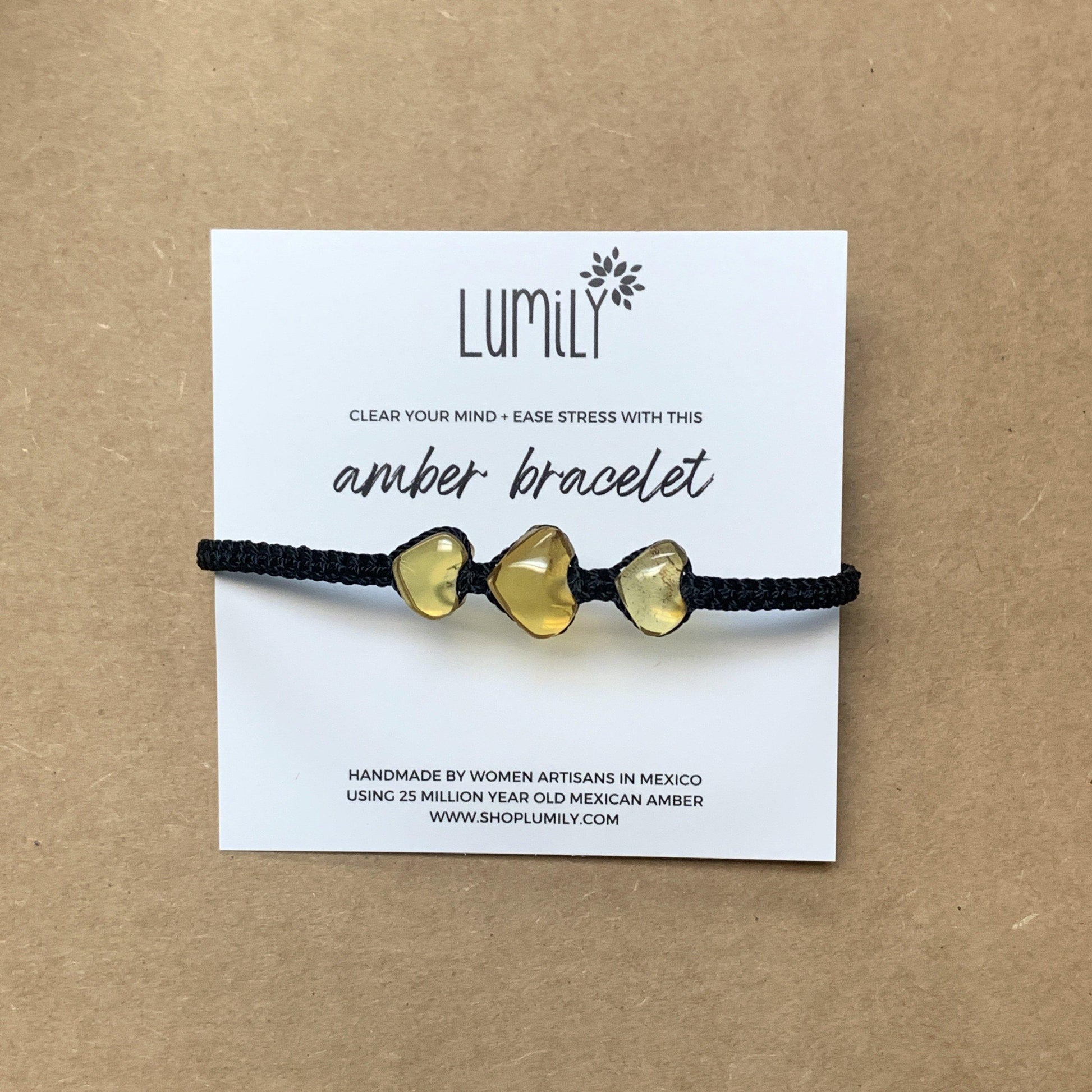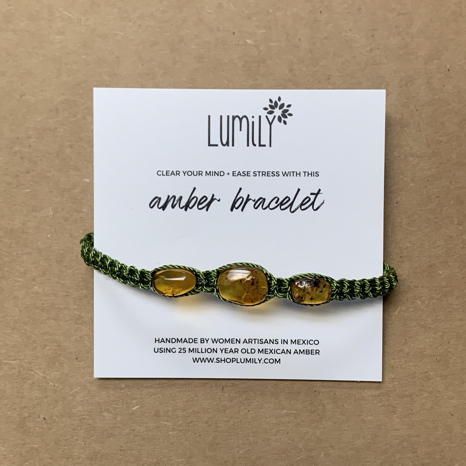 Handwoven with love by Erika in southern Mexico, this colorful bracelet features an authentic piece of 20 million-year-old Mexican amber from Simojovel, a small town in Chiapas. Each piece is unique in shape and color, and comes with a card sharing the story of amber and how to wear it.