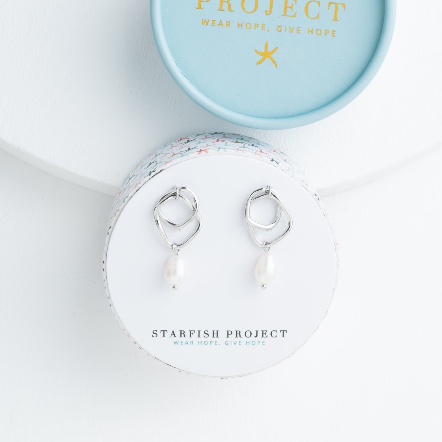 Express your individuality with our modernist-inspired Everlasting Pearl Earrings. This equal parts modern and classic pair crafted in white gold features two organic circles that dance and flow with the freshwater pearl as their anchor. Whether for your big day or every day, may this versatile pair remind you of the beautiful women and girls finding restoration through your collection of Starfish Project jewelry.