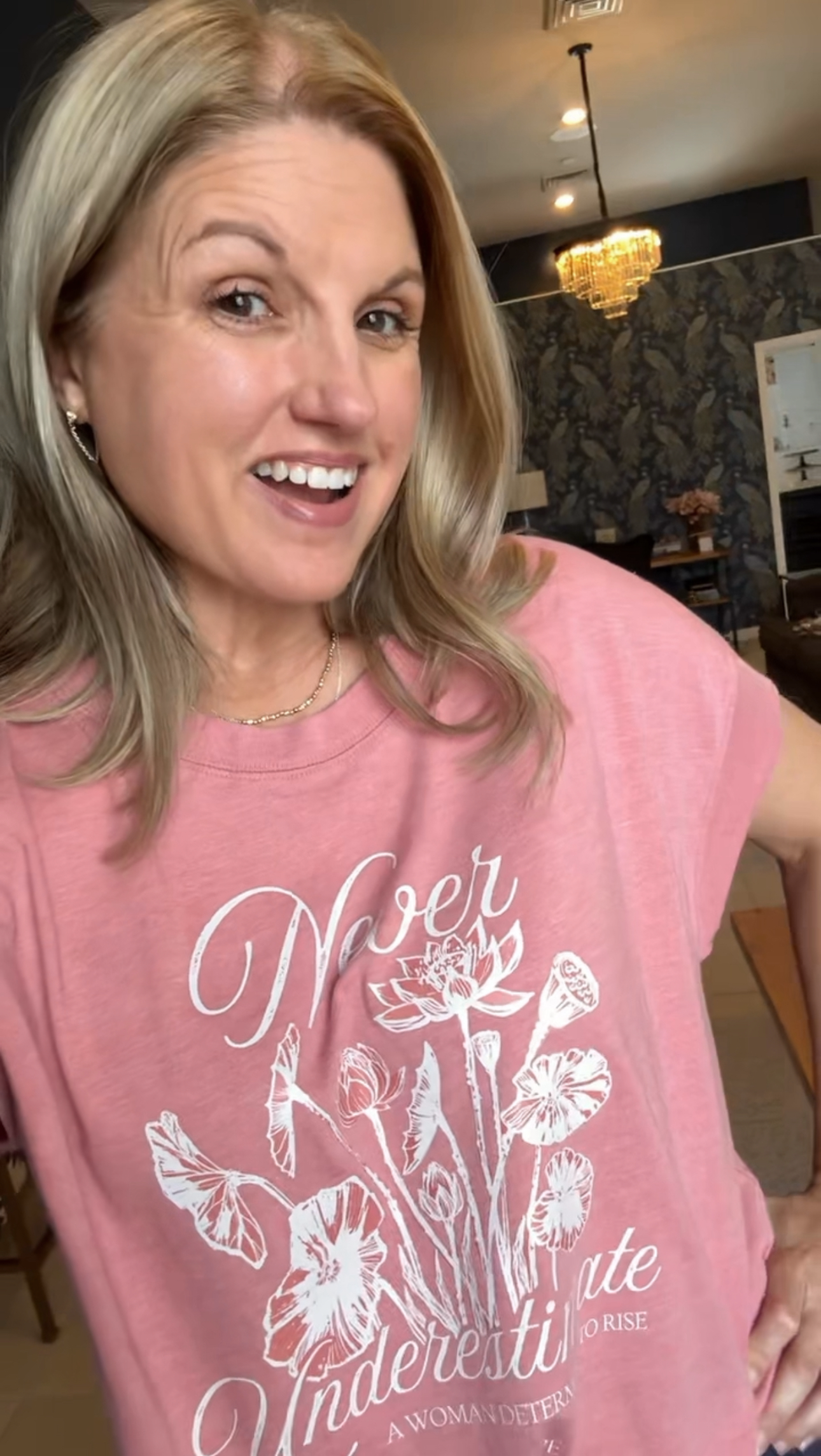 This is the most beautiful color and the fit is cool and casual! Add on the positive message and it’s perfect!