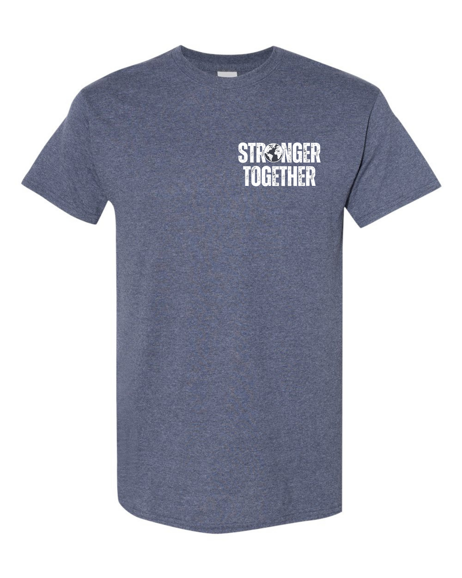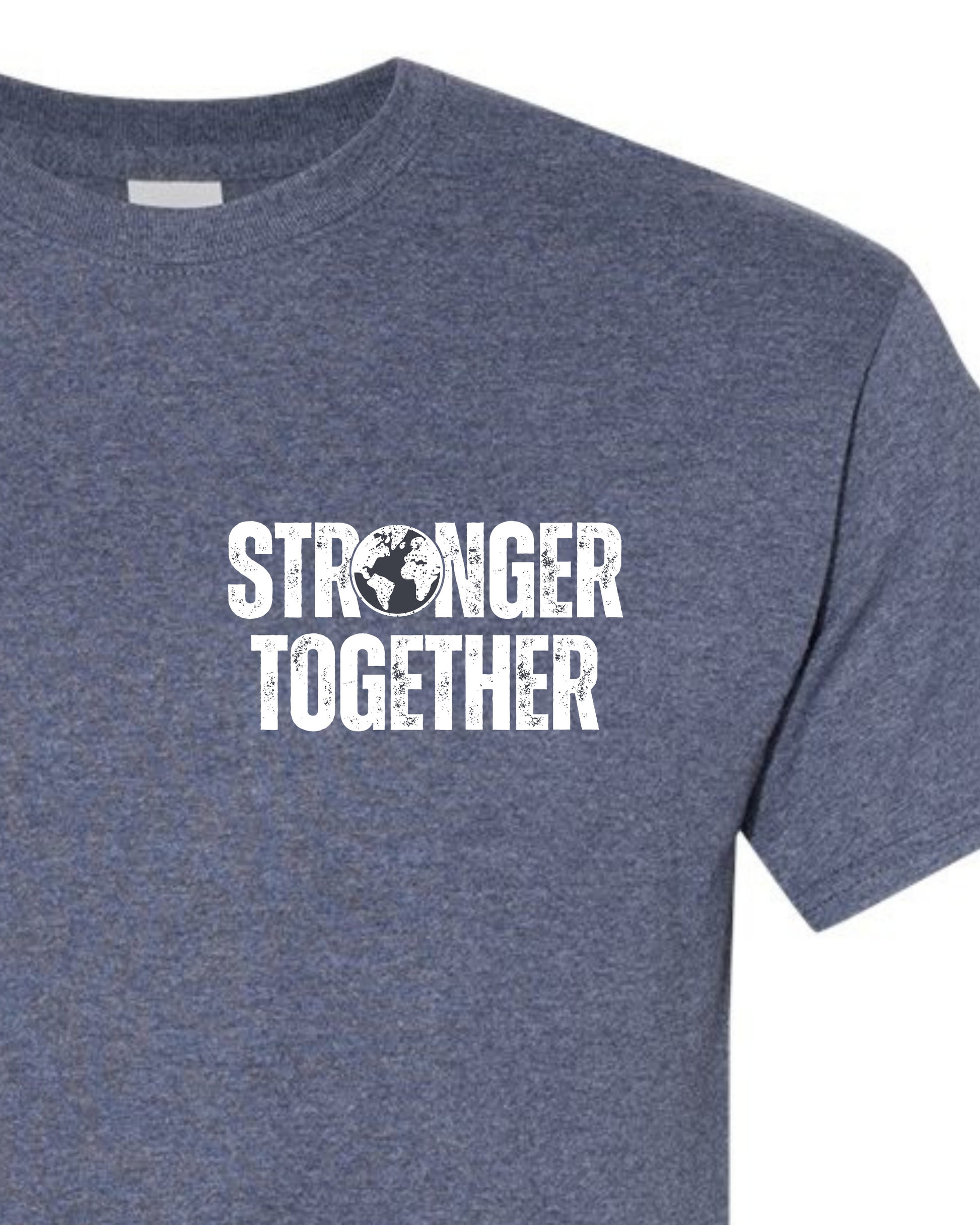 Take a stand when you wear this ethically-crafted, heather navy t-shirt or gift it to someone you love. This shirt has a classic fit with the message "Stronger Together" on a pocket print design and is ethically made in Nicaragua using 100% U.S. Cotton Trust Protocol Standards. Designed with care for both people and the planet, this piece is as ethical as it is stylish!