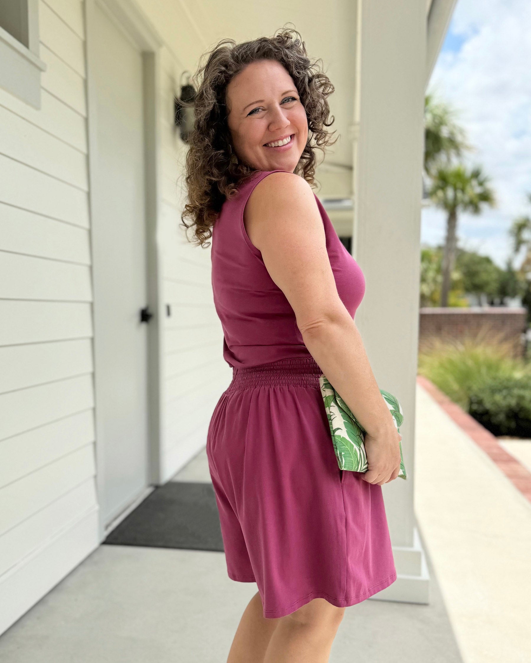 These smocked shorts have flat front pockets. With a longer inseam for shorts, they are as comfortable as they are dressy.