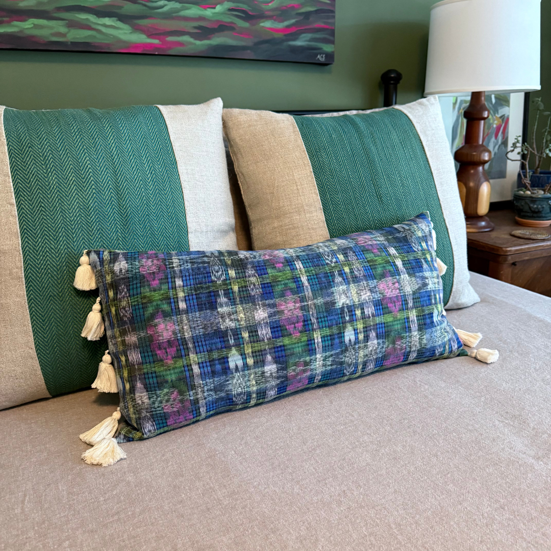 Approximate Measurements: 12” x 24” Materials: 100% cotton Down/feather insert included. Care Instructions: Remove cover to hand wash in cold water. Dry flat. Handmade Vintage: This product is made with handmade, upcycled fabric. We believe the minor imperfections associated with vintage fabric are part of the charm and uniqueness of the item. We do our best to take photos that accurately represent the true colors and worn nature of the handwoven fabric, but colors vary across monitors, and photos can’t highlight all aspects of a product.