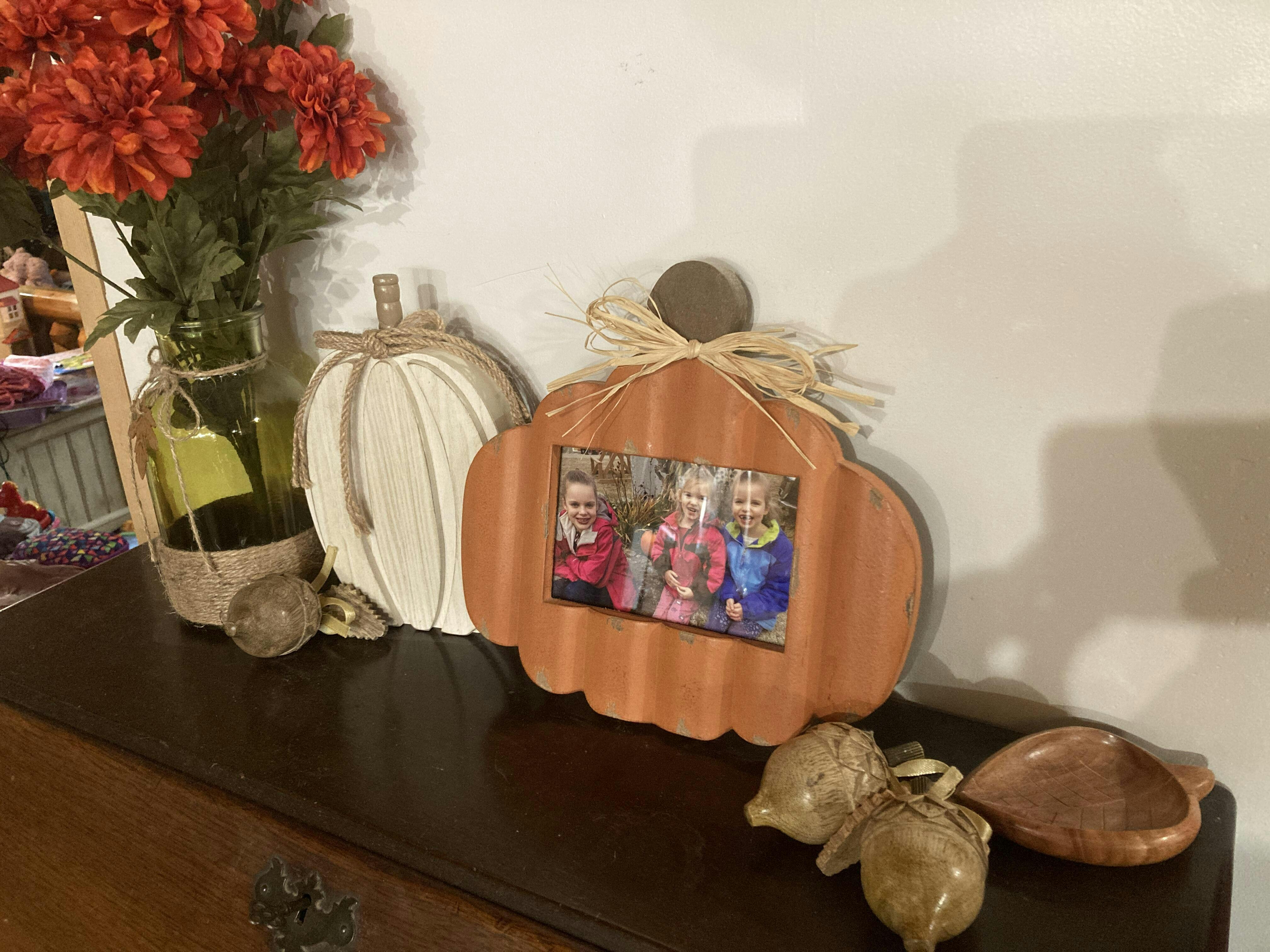 I put this cute little dish on my desk to hold my keys. It looks great with my other fall decorations.