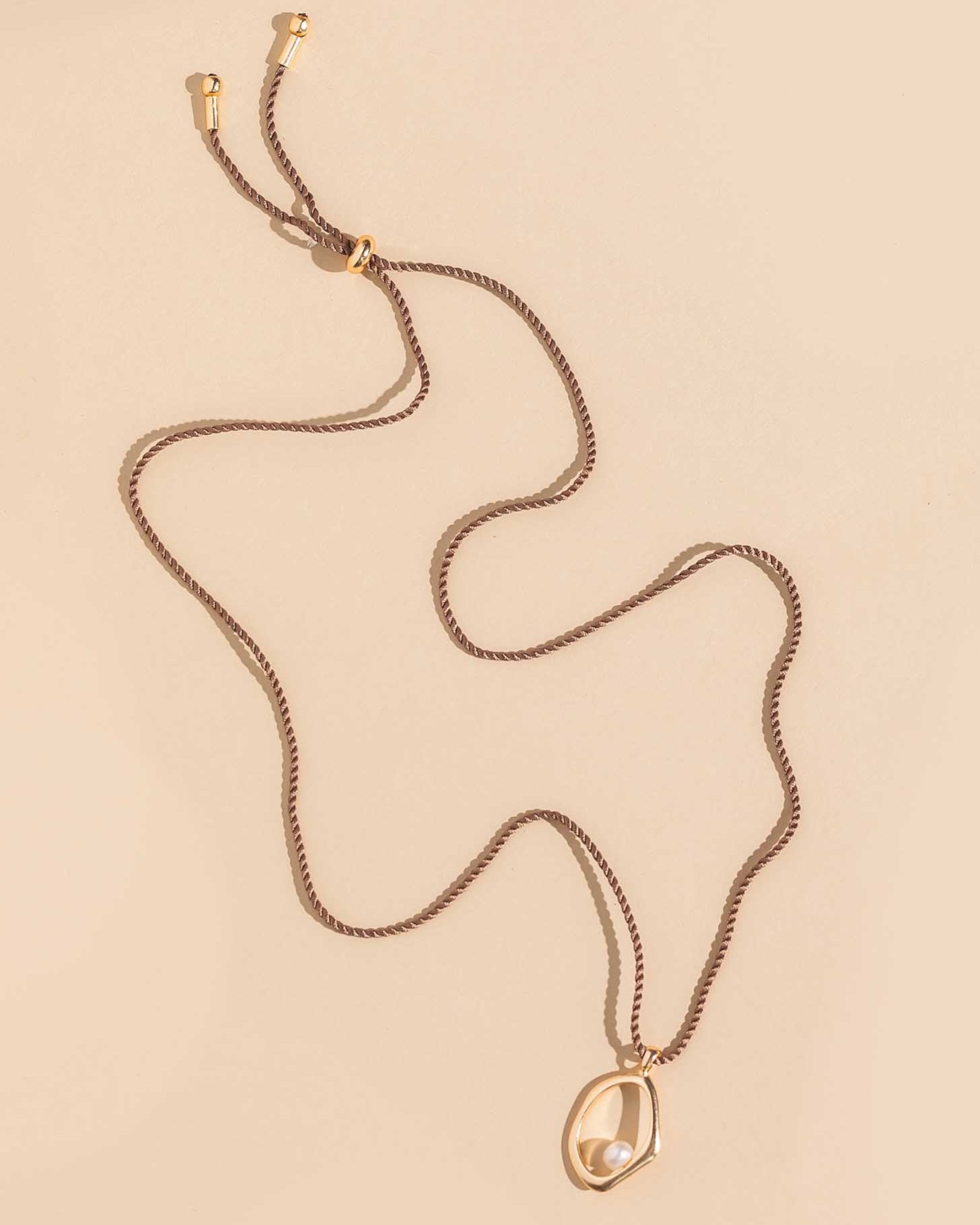 Create safe jobs with fair wages in areas of extreme poverty in India when you purchase the Ardent Necklace! The design of the Ardent Necklace makes it uniquely customizable, featuring its twisted cord, elegant metal finishing and an adjustable golden bead for easy wearing. This necklace is easy to pull over your head and adjust to your perfect length. The gold-tone pendant is an organically shaped pendant with a freshwater pearl.