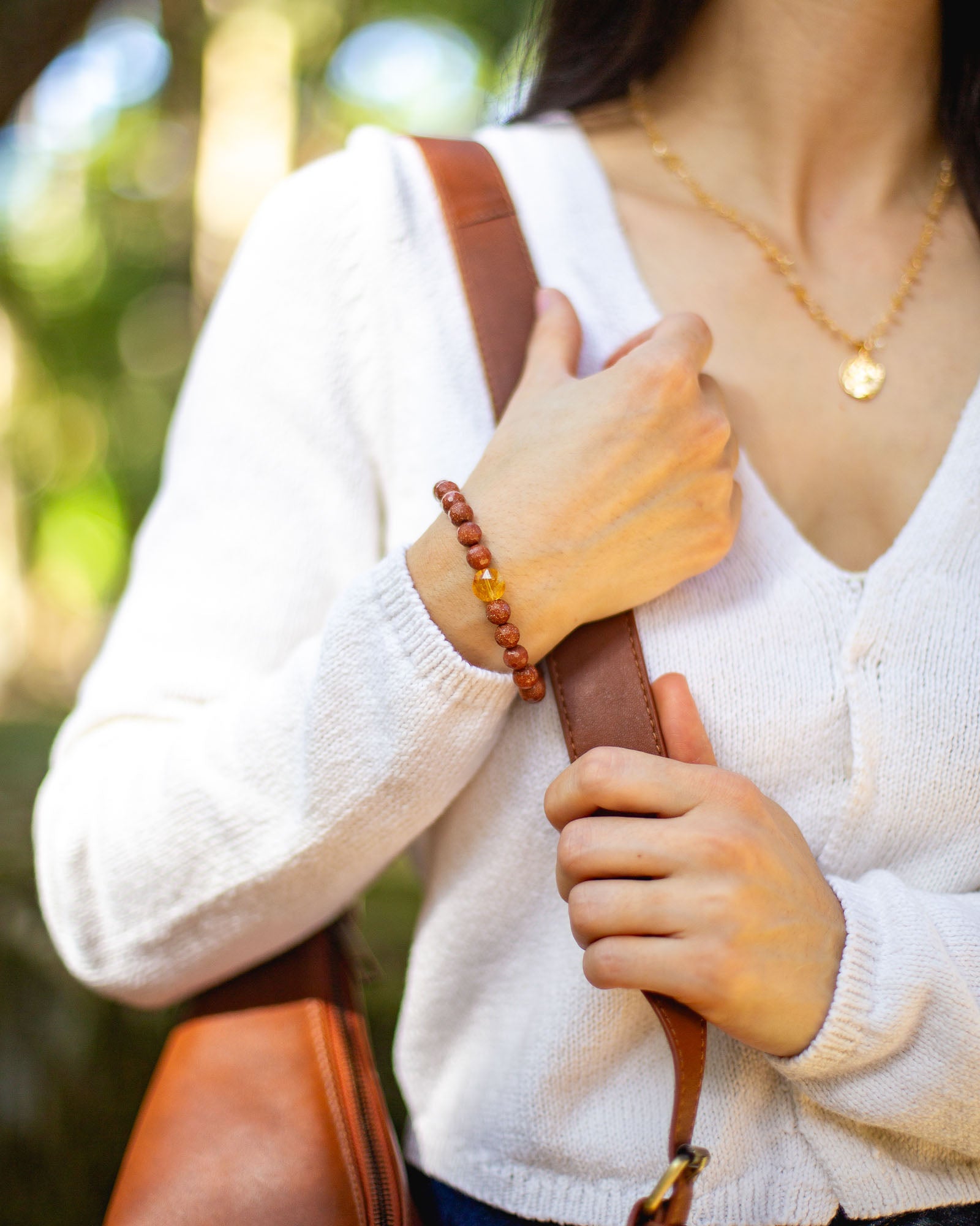 Every Goldstone Light Bracelet supports a safe house in the Dominican Republic that provides housing, education, legal services, and trauma counseling for survivors of human trafficking. The stretch-to-fit bracelet features shimmering goldstone beads and a Citrine stone bead for a beautiful one-of-a-kind look.