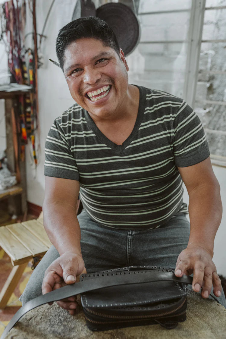 Handmade in Chiapas, Mexico, this bag reflects generations of leathercraft passed down with pride. This work of art takes Elias & his team of artisans 11 hours to make.