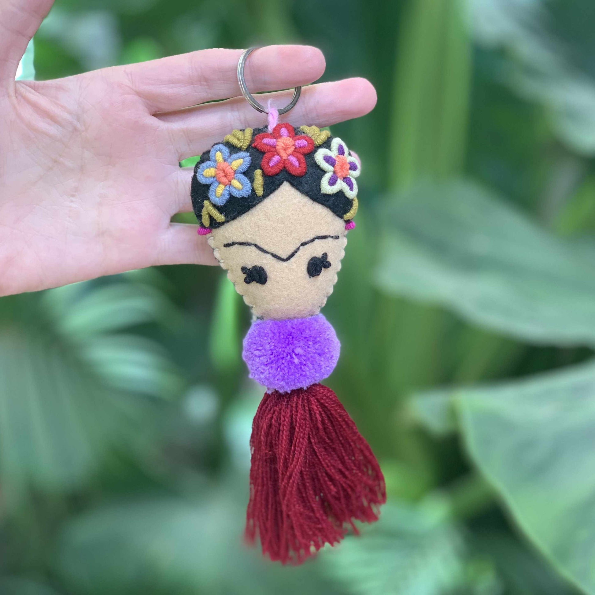 Frida has never looked so sweet and charming! This keychain/zipper pull edition in her honor is hand embroidered on colorful felt by our artisan partners in Chiapas, Mexico. Perfect as a keychain or zipper pull! Each Frida keychain has its own style, there's no twins here - they come in different bright colors and each is as beautiful as the next. Now with a lobster claw clasp!