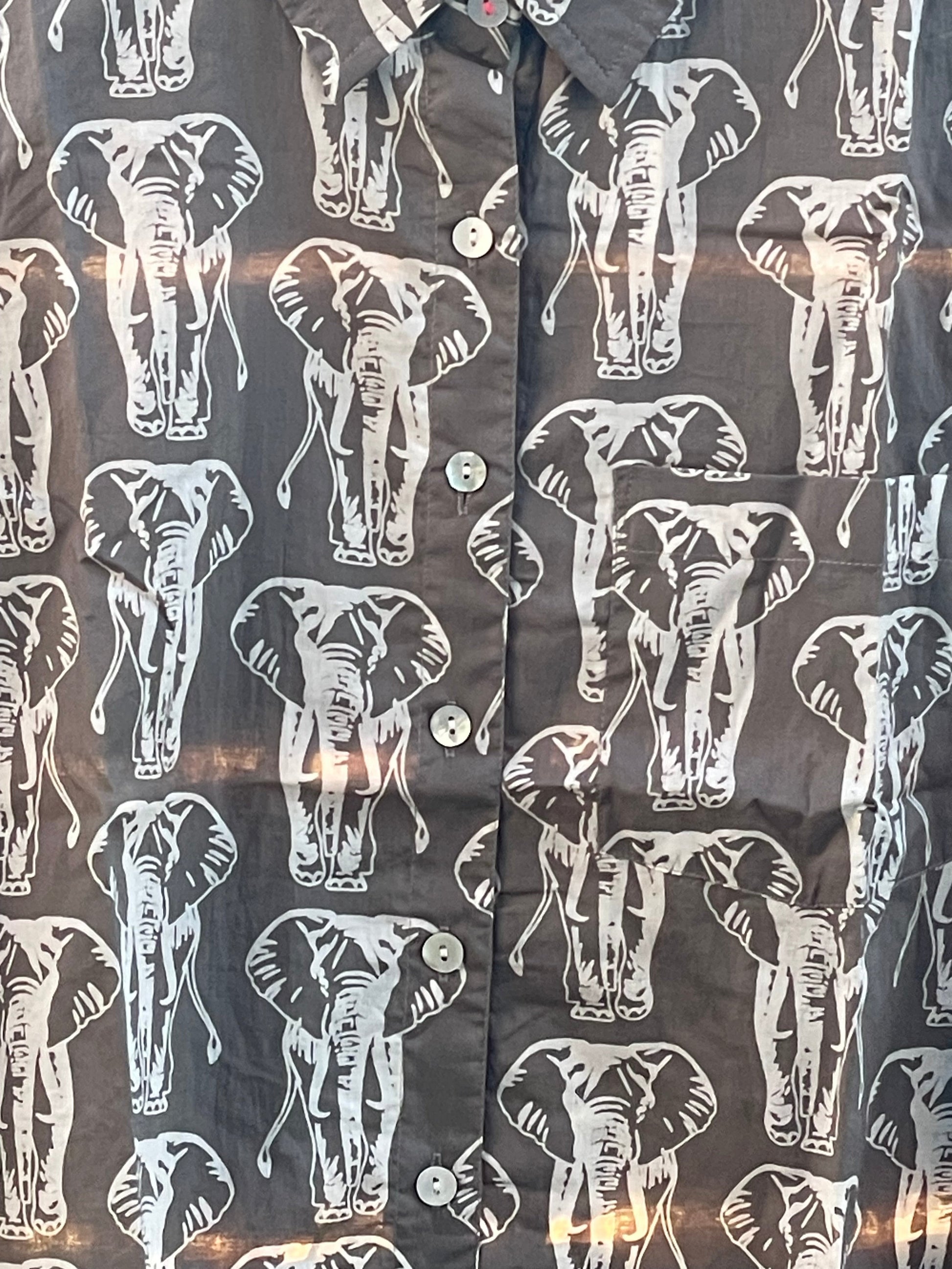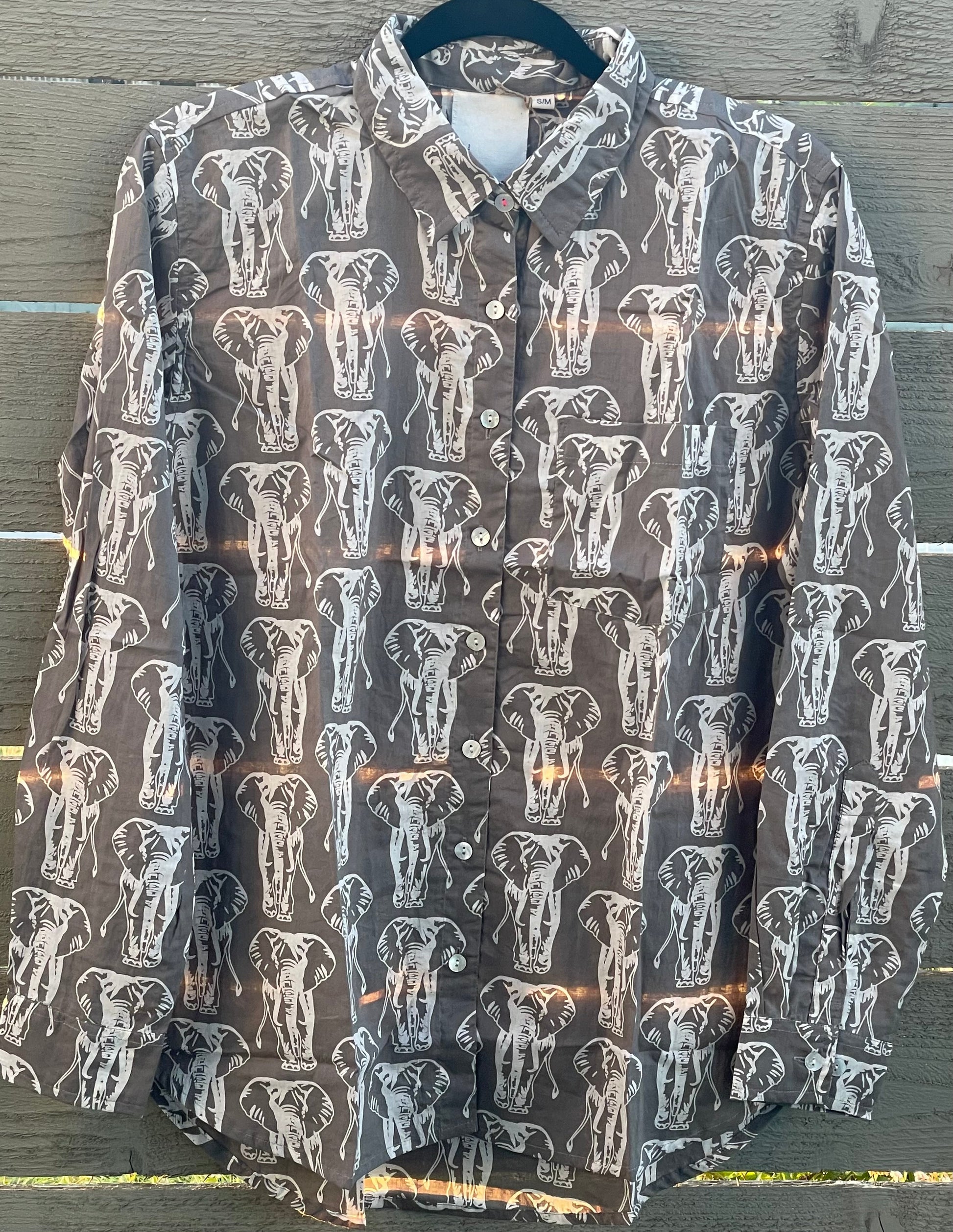 The Good Boyfriend long sleeve button down shirt is a comfortable and effortlessly cool wardrobe staple with a sustainable story. From its origin of GOTS certified organic cotton in natural fields, to the hand loom processing, artisan crafted block from carved wood to hand stamp the elephant print, hand construction and sewing of garment; the entire lifecycle of production is sustainable and keeps the heritage of artisan practices alive. With its relaxed, modern fit, and casual silhouette, the Good Boyfriend shirt offers endless styling options and ways to wear this eco-fashionable favorite.Ellie is 5' 9" and wearing a size XS