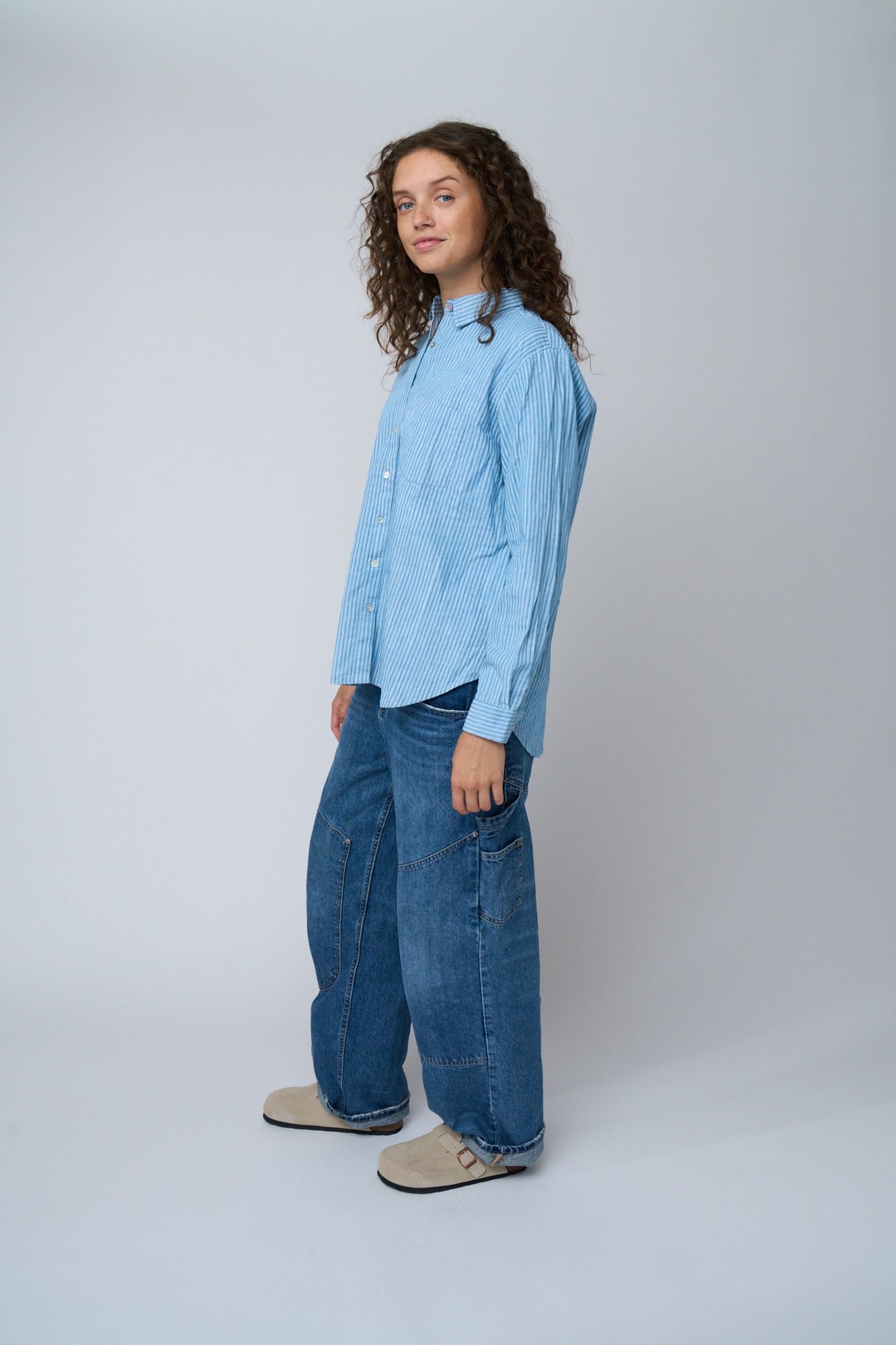 Good Boyfriend Shirt - Menswear Stripe Chambray & White