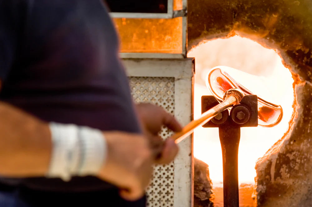 Firozabad is one of those special places renowned for a craft heritage that has survived through centuries and continues to thrive today. Though not far from the Taj Mahal, you probably won’t see it listed in many tour books. This is India’s glass-making capital where many still use simple tools and traditional techniques to create hand blown works of art. It is a fast growing city where modern factories blend with 16th century palaces but traditional handcraft remains deeply embedded in its identity. An estimated 90% of Firozabad’s population relies on the glass industry for their income. Gunjan and her team of 350 artisans are part of this heritage and have grown up watching previous generations master their skills. Despite the push to modernize and industrialize the work, they remain committed to using traditional and time-honored techniques. In a major break with the past, however, women are now taking the helm as leaders in this traditionally male-dominated industry. Together, we have proudly: sold 28,000 pieces of glassware, recycled 14 tons of glass, created 1000s of hours of fair wage artisan labor.