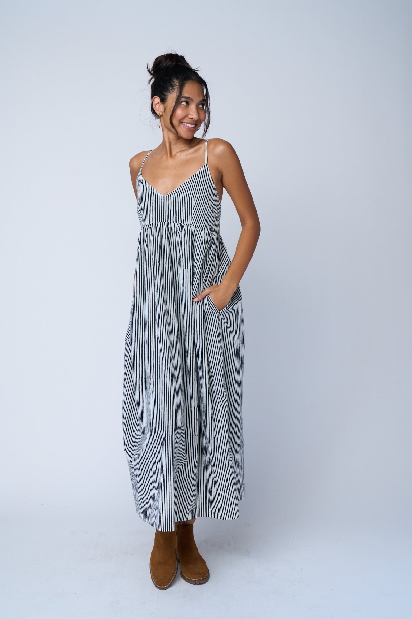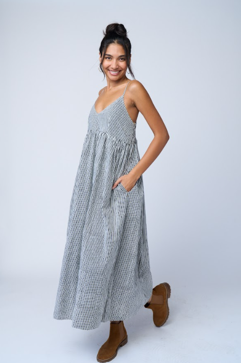 Hamptons Dress - Menswear Stripe Black